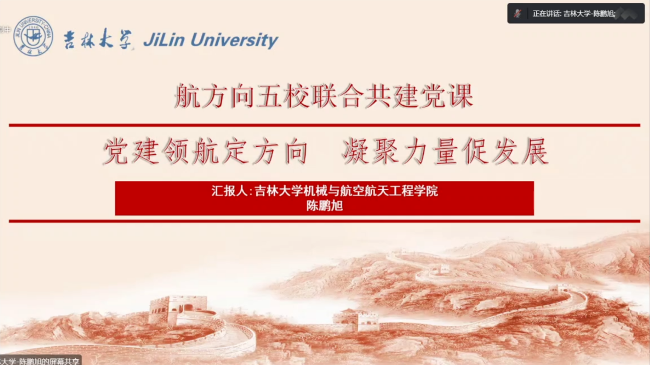 新葡的京集团8814陈鹏旭以《党建领航定方向,凝聚力量促发展》为题,对学院研究生党支部的党建工作、航空航天领域做出杰出贡献的校友以及航空航天方向的研究进展进行介绍,聚焦二十大中与航空航天相关的内容举办主题党日活动;哈尔滨工业大学胡佩涛以《筑强航天梦,再谱新华章》为主题,介绍了哈尔滨工业大学航天学院基本概况、以二十大精神学习活动为主的党建活动和以思想引领为核心的红色精神传承;紧接着厦门大学黄郭辰以《党建引领科研,国家需求引领技术攻关》为题,对厦门大学航空航天学院进行介绍,讲解学院党建思政的内容,展示科学研究的标志性成果。在活动最后,清华大学航天航空学院党委副书记黄伟希对本次活动进行总结发言,希望各个学校支部之间能共建经验交流,积极响应国家的号召,为社会做出更多贡献。