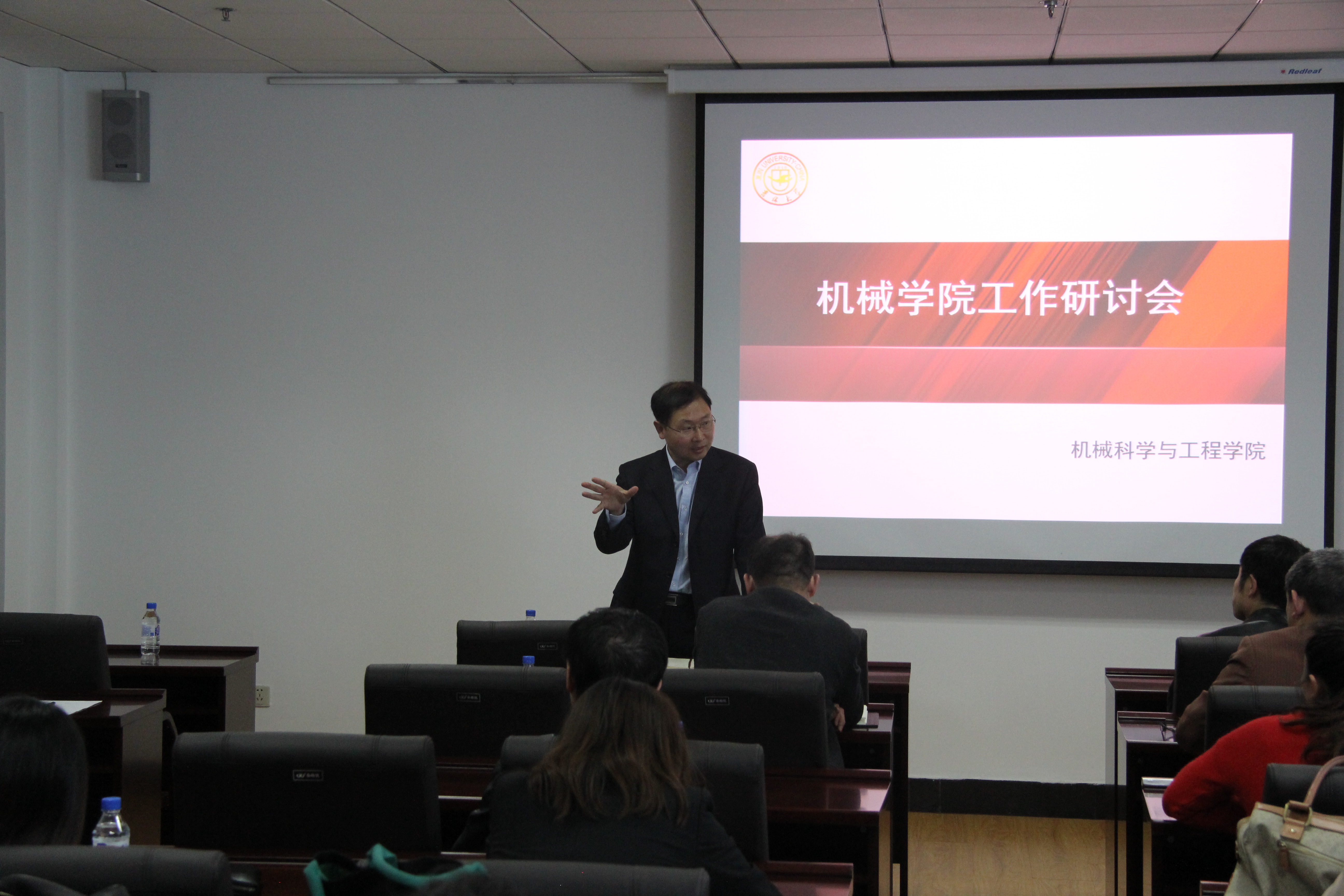 为贯彻落实2015年学校和学院工作会议精神,4月20日下午,我院在机械材料馆529召开学院工作研讨会。学院班子成员以及各系(室、中心)党政负责人共45人出席了本次会议。会议由学院党委书记王国强教授主持。 机械制造及自动化系、机械设计及自动化系、机械电子工程系、工程力学系、工业工程系、机械原理与设计教研室、工程与计算机图学教研室以及机械基础实验教学中心等八个系(室、中心)负责人作了汇报,从师资队伍建设、人才培养、科学研究、实验室与实验基地建设、国内外交流与合作、党建工作、治安和综合治理等方面介绍了本单位的工作计划和主要措施。针对学院发展改革中存在的问题进行了研讨和交流。 杨兆军院长在总结讲话中指出,面对学院改革发展中存在的问题,必须认识和把握高等教育发展的新常态,领会国家科技创新新举措,从学院实际出发,加大高端人才引育,在提高人才培养质量及凝炼科研方向上下功夫。王国强书记强调,学院干部队伍应居安思危,有担当意识和创新精神,带领全院师生凝心聚力,开拓进取,为全面完成“十二五”规划任务,加快推进高水平研究型学院建设而努力奋斗。