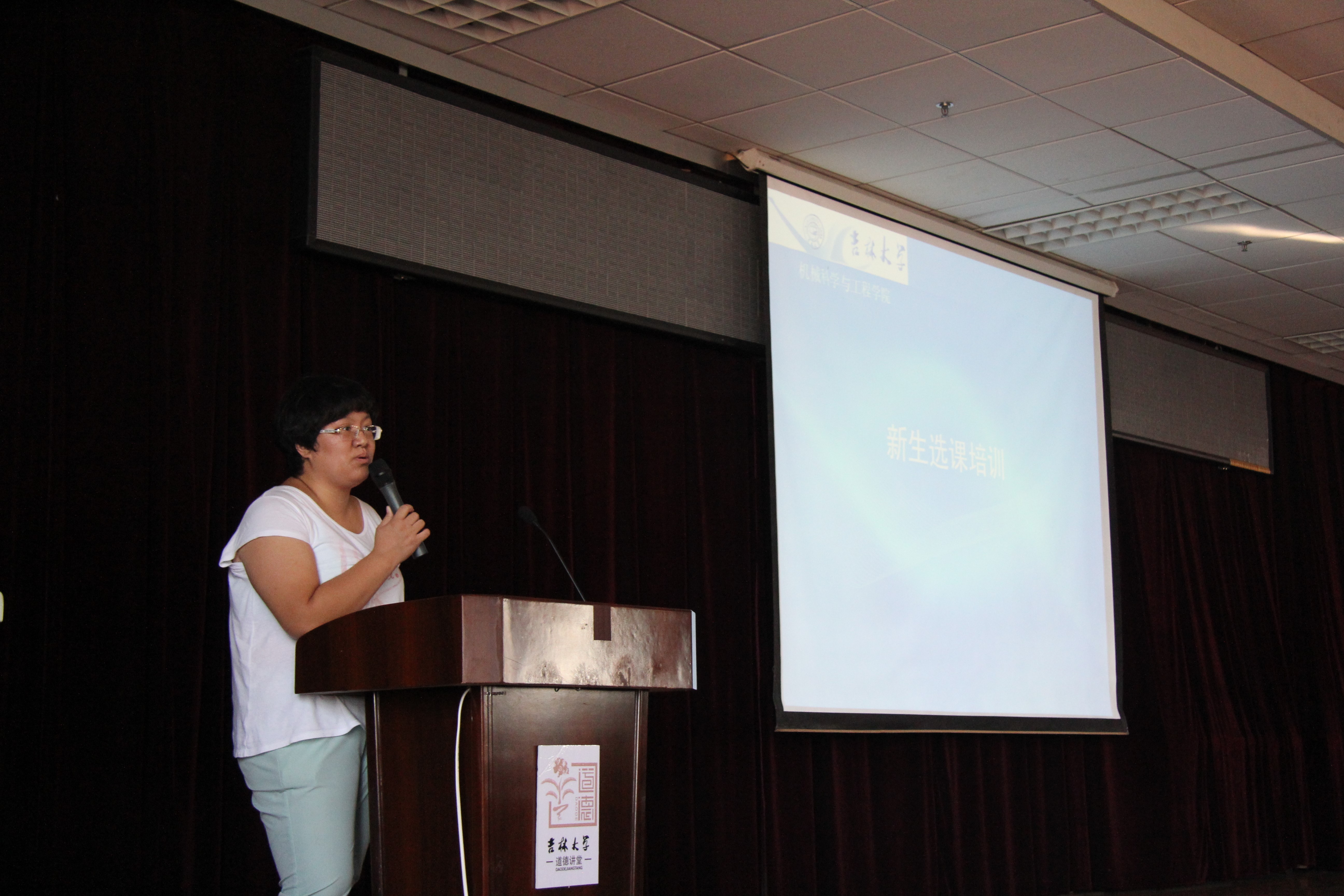 会议伊始,徐媛媛老师代表机械学院对全体2015级研究生表示了热烈的欢迎。随后徐老师详细的讲述了选课流程,并对吉林大学研究生选课系统进行了细致的讲解,尤其对学生选课过程当中经常容易出现问题的环节进行了梳理。徐老师建议大家应按照自己所研究方向进行合理的选课,这样才能做到术业有专攻。讲解过程全面生动,同学在台下仔细聆听,认真记录。会议最后,徐老师叮嘱同同学们一定要在第一年夯实基础知识,不断巩固所学内容,这才能为日后的厚积薄发做好铺垫。