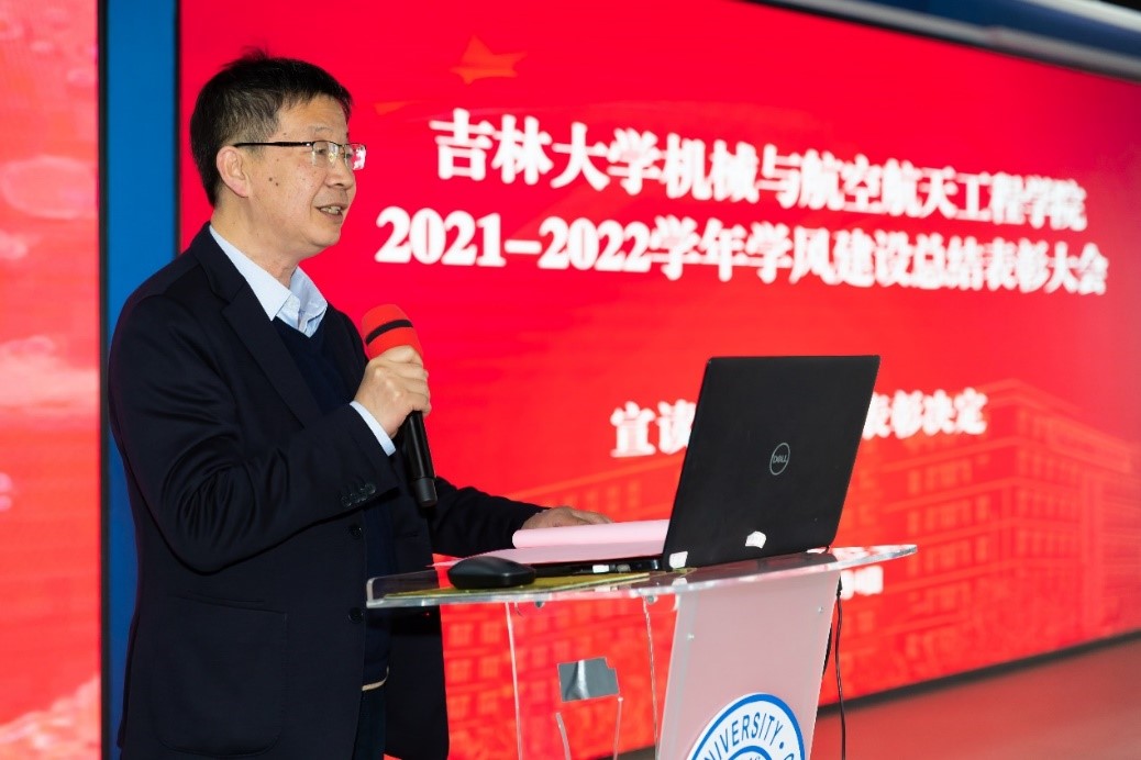 周晓勤院长宣读《2021—2022年度学风建设表彰决定》,授予龚雨寒等10名学生“院十佳大学生”、齐浩然等10名学生“院自立自强大学生”、141922班等6个班级“先进班级”、141926班等9个班级“优秀班级”、南岭校区一公寓304寝室等37个寝室“优秀寝室”、141921班陈德超小组等27个学习小组“院优秀学习小组”荣誉称号;靳志鹏等60名学生获“疫情防控突出贡献奖”,孙嘉政等56名学生获“学习进步奖”,院辩论队、院足球队、林铁成等17个团体及个人获“文体活动突出贡献奖”。