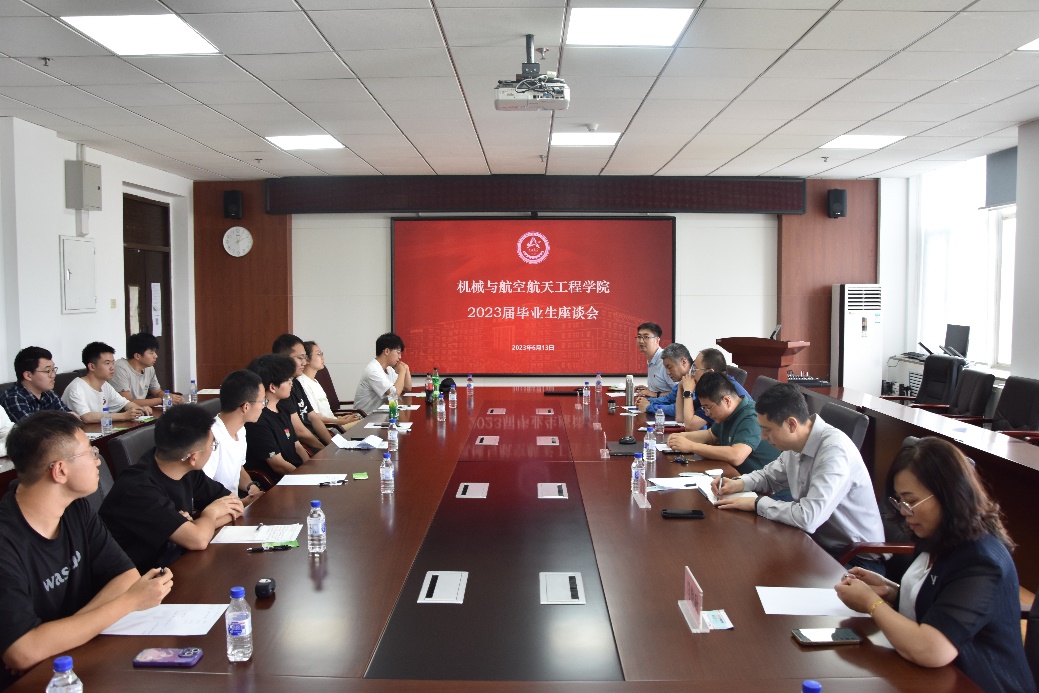 6月13日下午14:00,我院在机械材料馆529召开2023届本科毕业生代表座谈会。院党委副书记马艳秋、副院长左文杰、副院长吴文征、工程训练中心副主任兼副院长刘鹏、机械基础教学中心副主任董景石,院学生工作办公室、教务办公室老师及毕业生代表出席本次座谈会。会议由2023届毕业生辅导员赵帝老师主持。