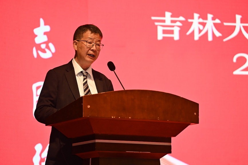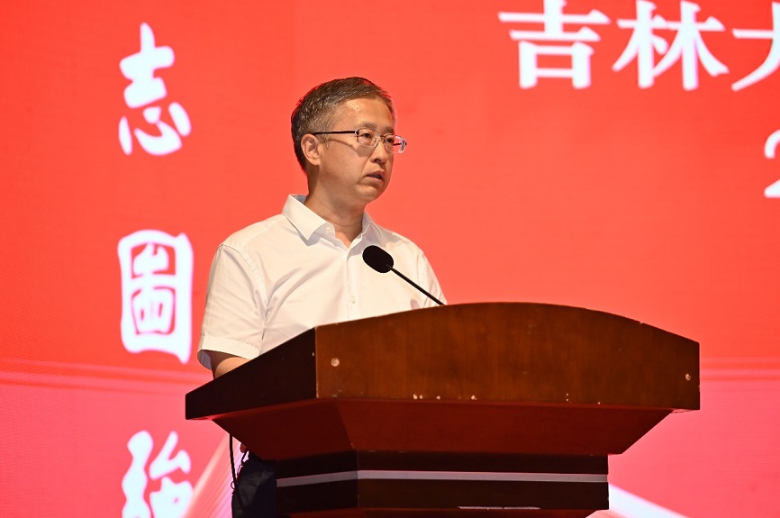 教师代表吴文征教授代表全体教师讲话,他向同学们致以最热烈的祝贺和最美好的祝福,希望大家在未来的工作和生活中要心系祖国,不负韶华;要明辨是非,坚定信念;要持之以恒,笃学实干。在追梦的路上披荆斩棘,砥砺前行,再创辉煌!