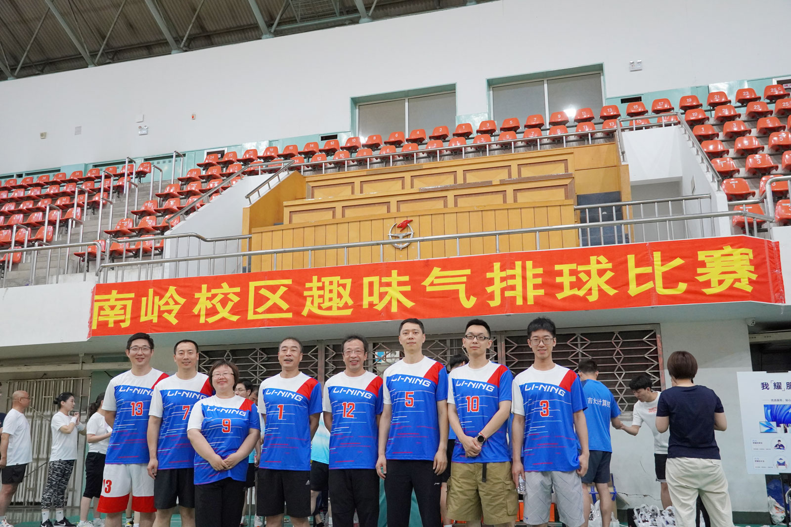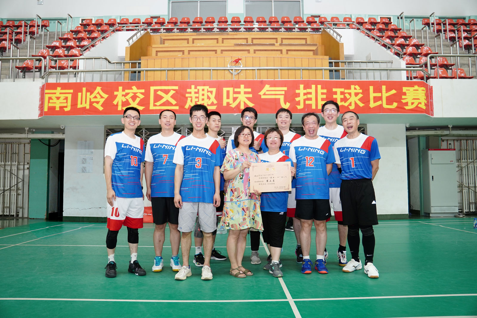 在7月2日举行的东区首届教职工趣味气排球赛上,灯光耀眼、热闹非凡,12支代表队师生欢聚一堂,共享体育盛会。新葡的京集团8814代表队小组第一出线后,惜败体育部,屈居第三。