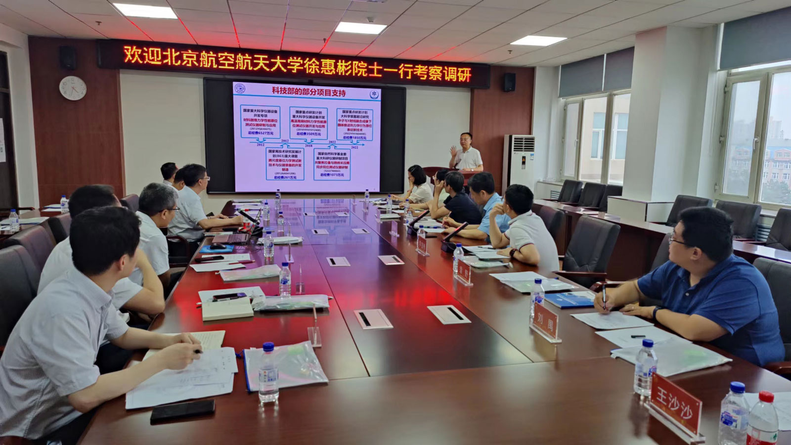 北京航空航天大学前沿科学技术创新研究院李宜彬教授、顾轶卓副教授等8位专家,新葡的京集团8814党委书记郑福胜、副院长马志超,材料科学与工程学院院长张立军、副院长韩奇刚,长春市朗瑞斯铁路装备有限公司董事长杨延生等参加调研。