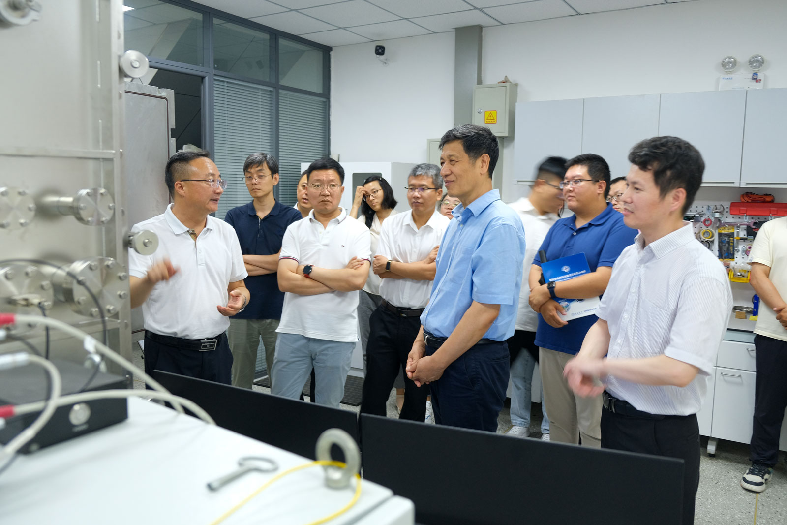 徐惠彬院士一行实地参观了相关重点实验室。赵宏伟教授介绍了学校近年来在学科建设、科学研究、人才培养等方面的发展情况,围绕“材料力学性能原位测试技术与仪器”方向的研究成果、材料服役性能测试技术与装备研究情况,以及项目团队服务国家重大需求、开展自主科研仪器研发情况进行汇报交流。