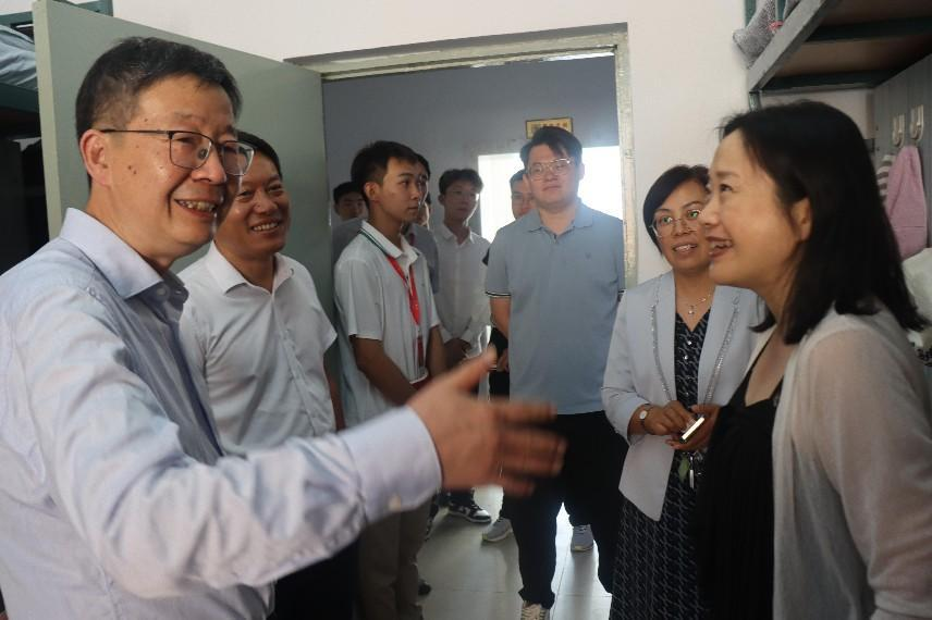 学院迎接新生报到工作圆满结束,为欢迎2023级新同学加入学院的大家庭,增加新生的归属感,深入了解同学们入校后的感受和遇到的困难,2023年8月27日下午,新葡的京集团8814院长周晓勤、党委书记郑福胜、党委副书记兼副院长马艳秋以及学生工作办公室全体辅导员到2023级新生寝室看望学生,为同学们送去了亲切的问候和温暖的鼓励。