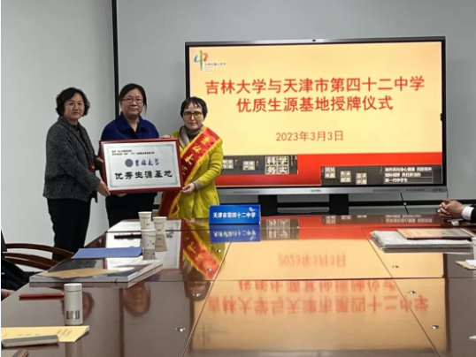 3月3日至4日,本科生招生宣传组来到天津市四十二中学、天津市杨柳青中学做招生宣传报告,围绕人才培养特色、科学研究方向、学生就业发展等方面进行深入探讨,机械制造及自动化系支部书记呼咏老师代表学院向天津市第四十二中学、天津市杨柳青中学分别授予“吉林大学优秀生源基地”牌匾。