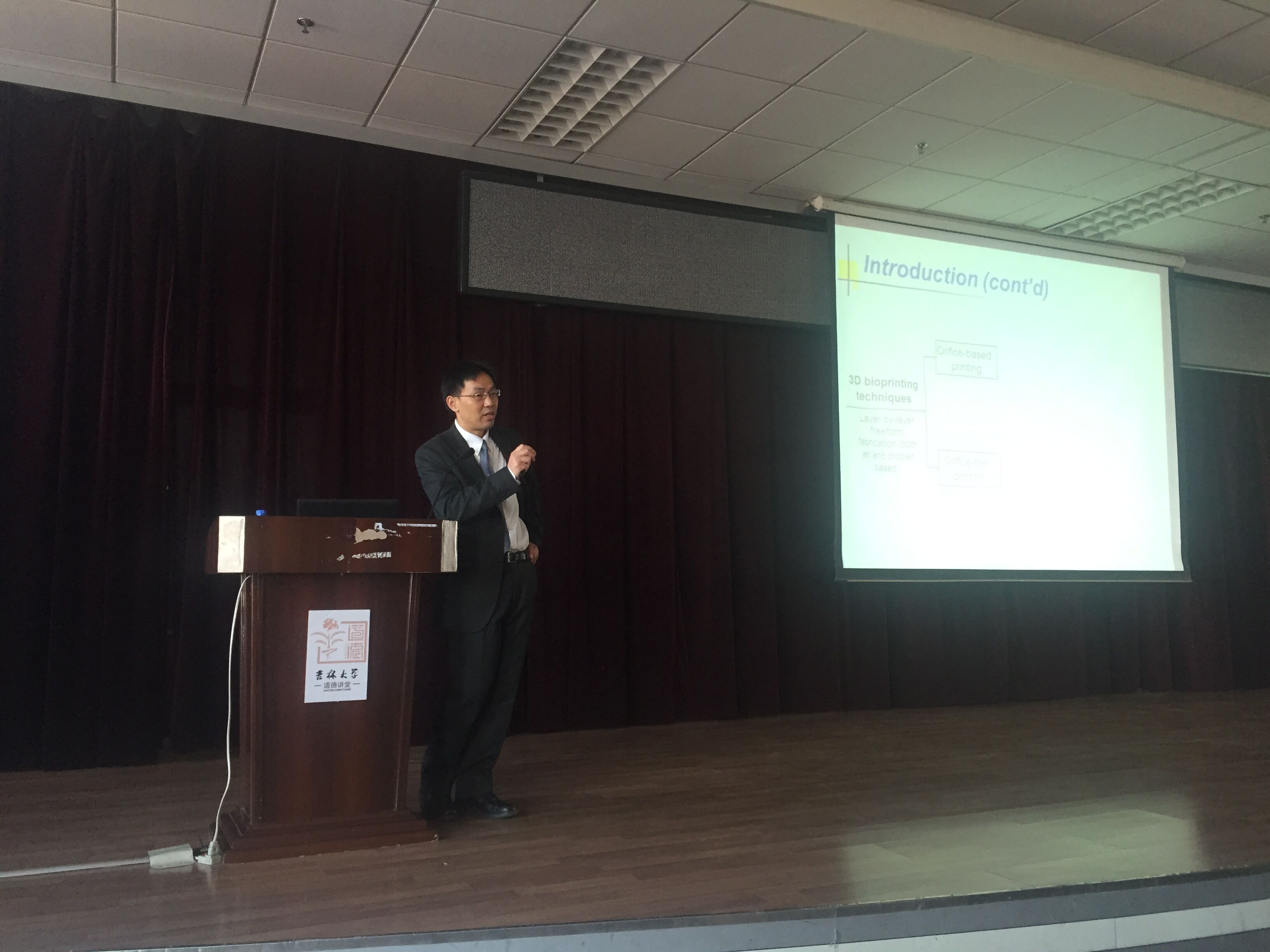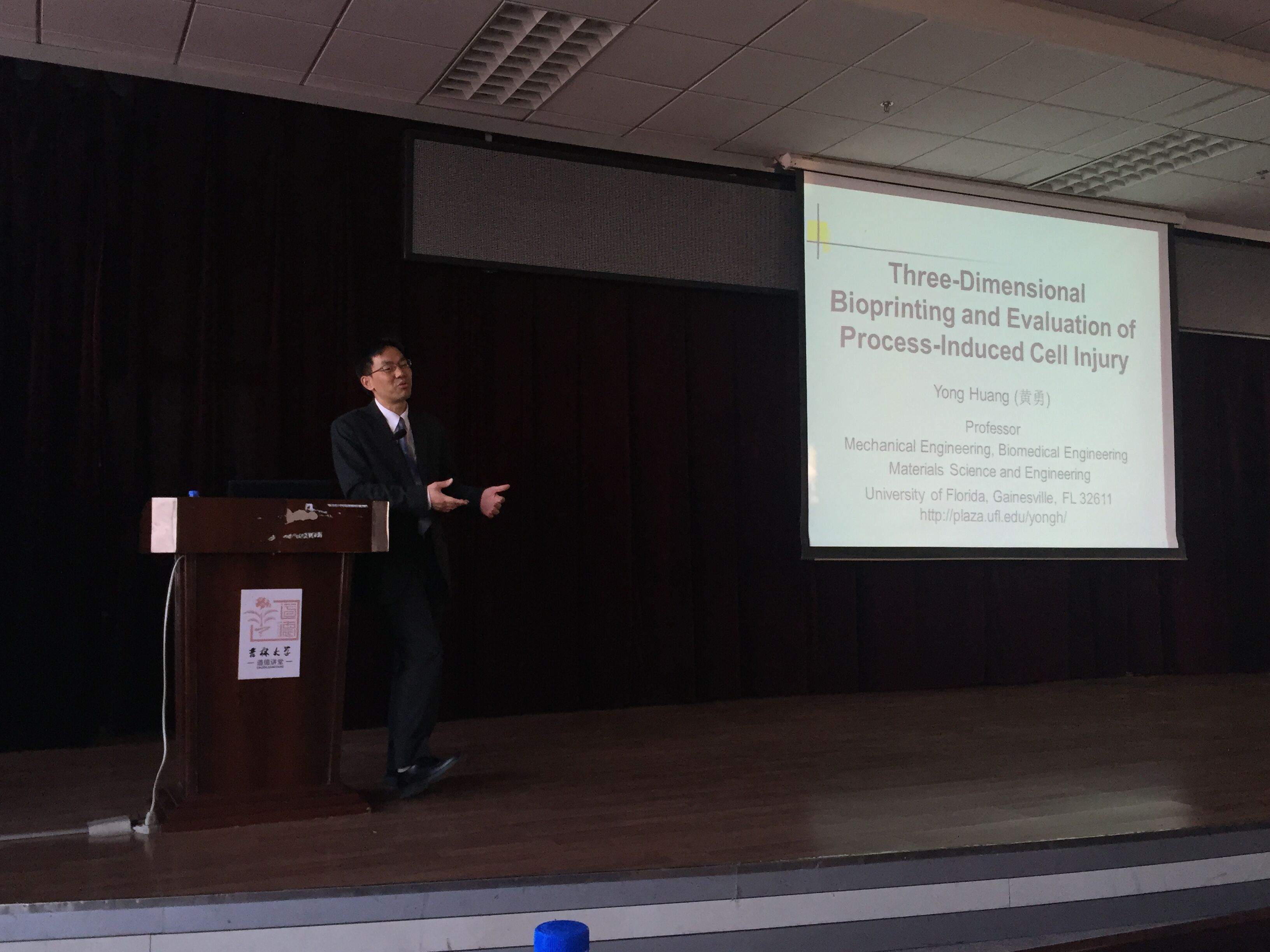 2015年12月24日上午9:00,美国佛罗里达大学机械与航天工程学院黄勇教授到吉林大学南岭校区逸夫机械材料馆八楼学术报告厅作了题目为“Three-Dimensional Bioprinting and Evaluation of Process-Induced Cell Injury”的学术报告。