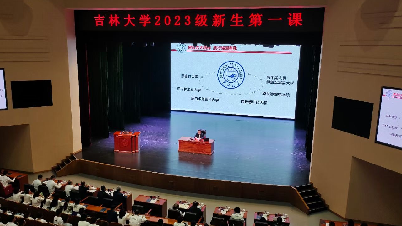 9月18日上午,吉林大学2023级新生在中心校区鼎新大讲堂迎来了“开学第一课”,校党委书记姜治莹以“赓续吉大精神、践行强国有我,努力成为堪当民族复兴大任的时代新人”为主题,与同学们共同回首吉林大学筚路蓝缕的创业历史,领略吉林大学闪耀辉煌的成就荣光,明晰吉大青年矢志拼搏的发展道路。学院党委副书记黄莹、研究生辅导员曲艺以及研究生代表参加本次活动。