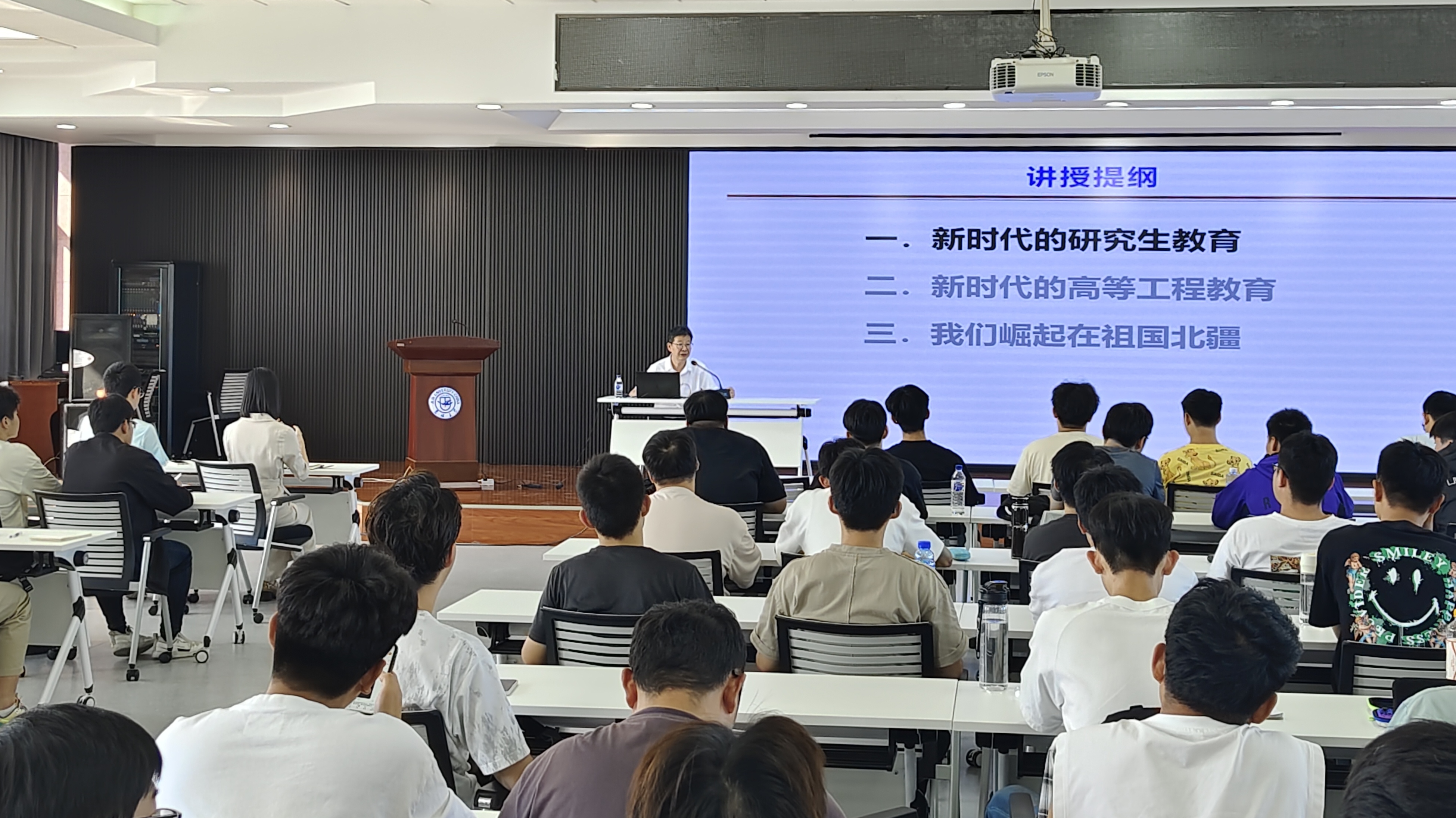 周晓勤院长从“新时代的研究生教育”、“新时代的高等工程教育”、“我们崛起在祖国北疆”三方面讲授开学第一课。周院长陈述了新时代对研究生的要求,并对研究生的分类以及专业的分类进行了介绍,让同学们对自己的专业分类有了更深的了解。周院长以国际大学人才培养模式的四象限模型为例,为同学们讲解了四类大学模式,何谓创新型大学、研究型大学、传统大学以及职业类大学,加深同学们对传统高等工程教育的了解。随后周院长以清华大学为例,为同学们讲解新时代、新形势下,将以“学术更学术、专业更专业”的分类研究生培养要求提升研究生教育质量。周院长引用习近平总书记话语,勉励大家向着卓越工程师而努力,成为爱党爱国、敬业奉献、具有突出技术创新能力、善于解决复杂工程问题的工程师。