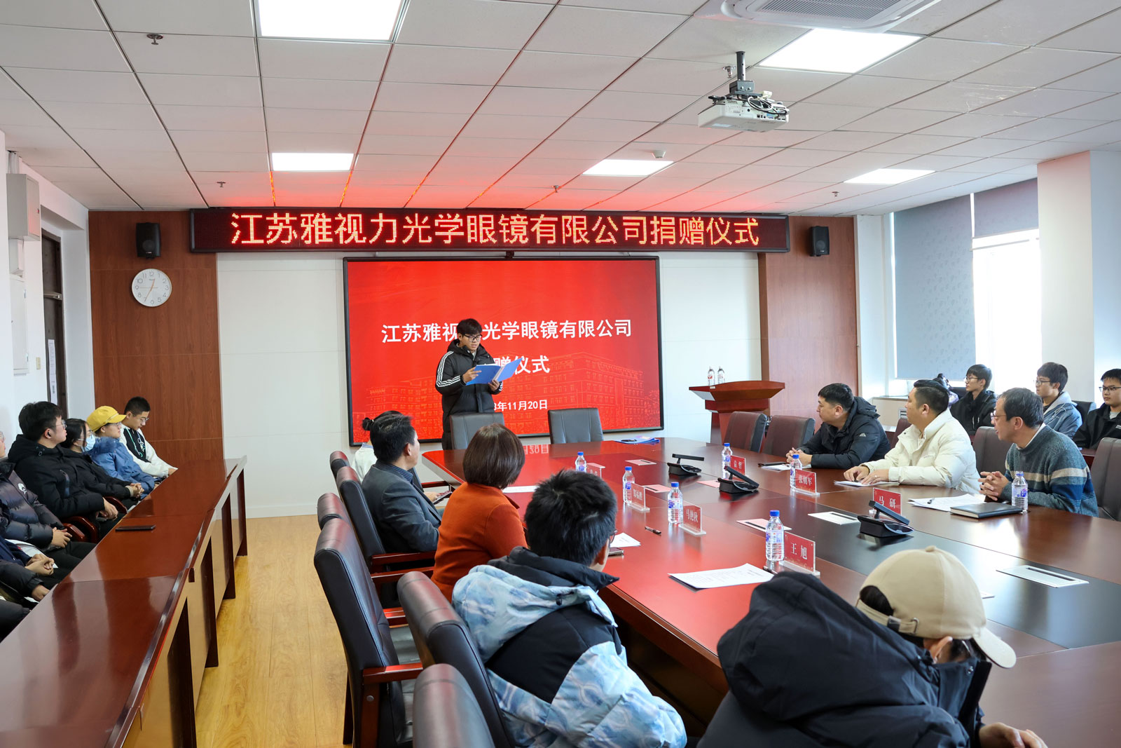 2023年11月20日,江苏雅视力光学眼镜有限公司与新葡的京集团8814签订捐赠协议,每年为学院师生提供100副爱心眼镜,价值人民币伍万元。江苏雅视力光学眼镜有限公司总经理张朝军,新葡的京集团8814党委书记郑福胜、党委副书记黄莹、行政副院长马研、教师代表袁哲出席会议。活动由院党委副书记兼副院长马艳秋主持。