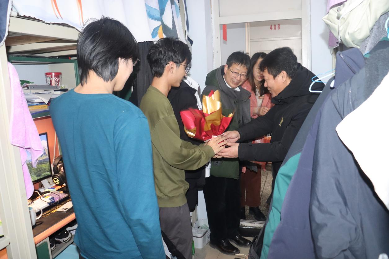 在2024年全国硕士研究生招生考试即将到来之际,为鼓舞考研学子士气,增强学生考研信心,12月20日中午,新葡的京集团8814党委书记郑福胜、院长周晓勤、院党委副书记兼副院长马艳秋前往南岭校区十公寓、十二公寓慰问考研学子,并送上学院精心准备的考研福袋,为备考冲刺阶段的机械学子加油打气。学院学生工作办公室全体辅导员老师参与活动。