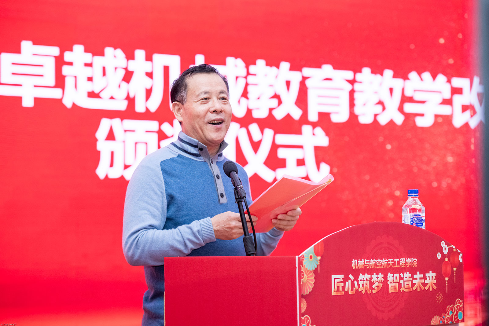 学院学术委员会主任于化东宣读了首届“吉林大学卓越机械教育教学改革奖”名单,院长周晓勤为获奖者颁奖。