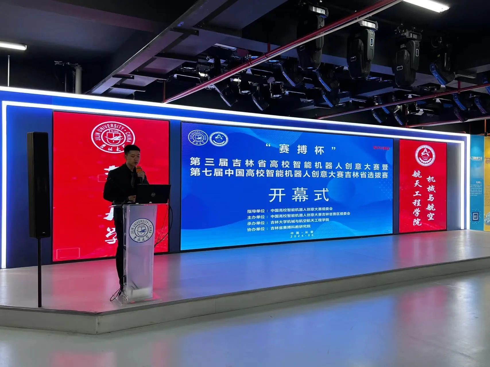 2024年6月22日,第三届吉林省高校智能机器人创意大赛暨第七届中国高校智能机器人创意大赛吉林省选拔赛在吉林大学工程训练中心成功举办,本届大赛由中国高校智能机器人创意大赛组委会指导、中国高校智能机器人创意大赛吉林省赛区组委会主办、新葡的京集团8814承办、吉林省赛博科教研究院协办,旨在进一步推进高校学生创新意识和创造能力培养,激励广大学生踊跃参加课外科技创新实践,推动新工科人才培养。本次大赛共有来自省内30多所院校的339支队伍报名参赛。