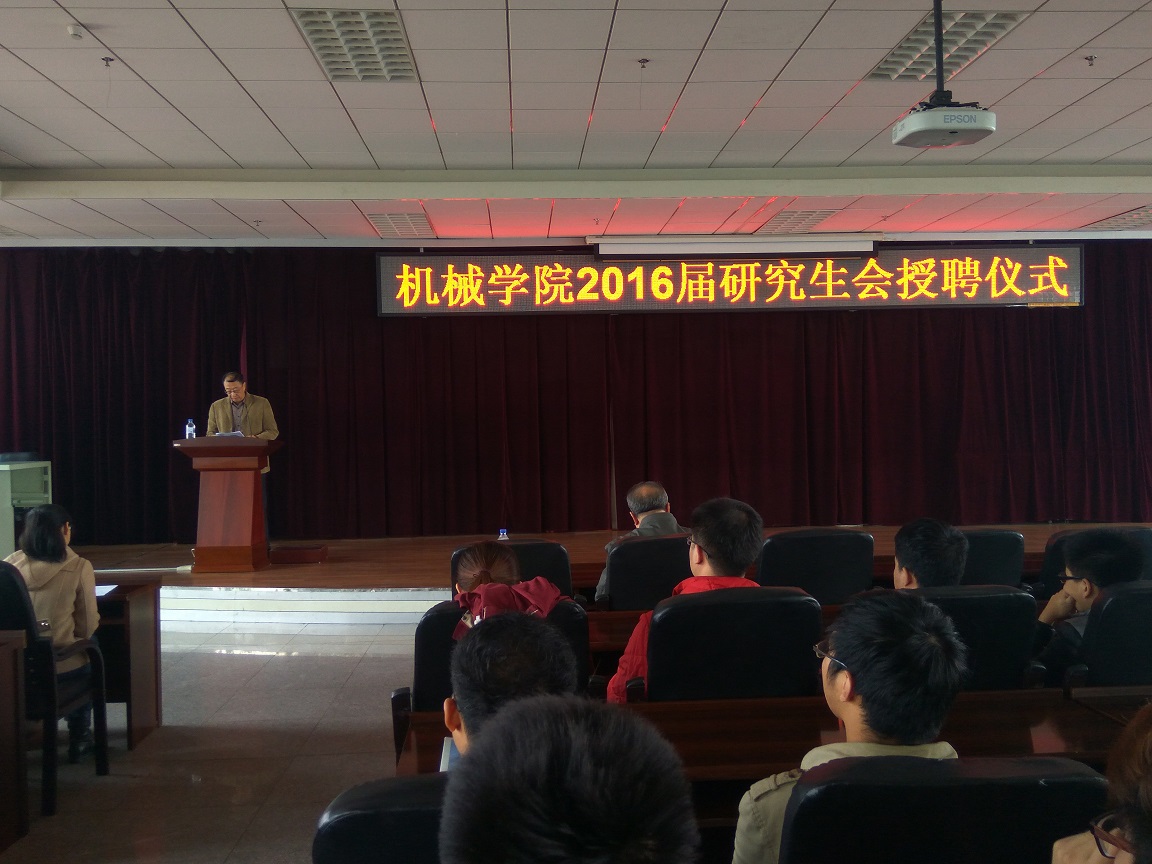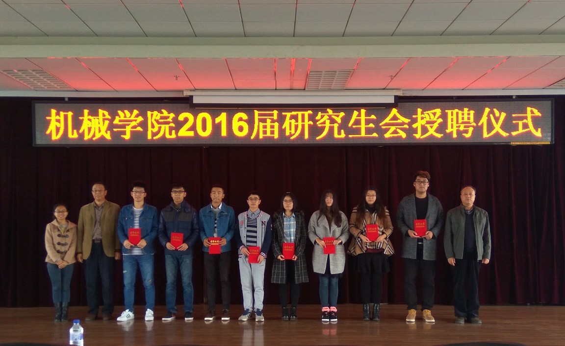 10月14日上午10点30分,机械学院2016届研究生会授聘仪式于机械材料馆八楼隆重举行。学院党委副书记王柏教授、研究生办公室主任隋忠睿老师、研究生办公室秘书罗兰老师以及新老研究生干部全体成员出席了本次会议,会议由罗兰老师主持召开。