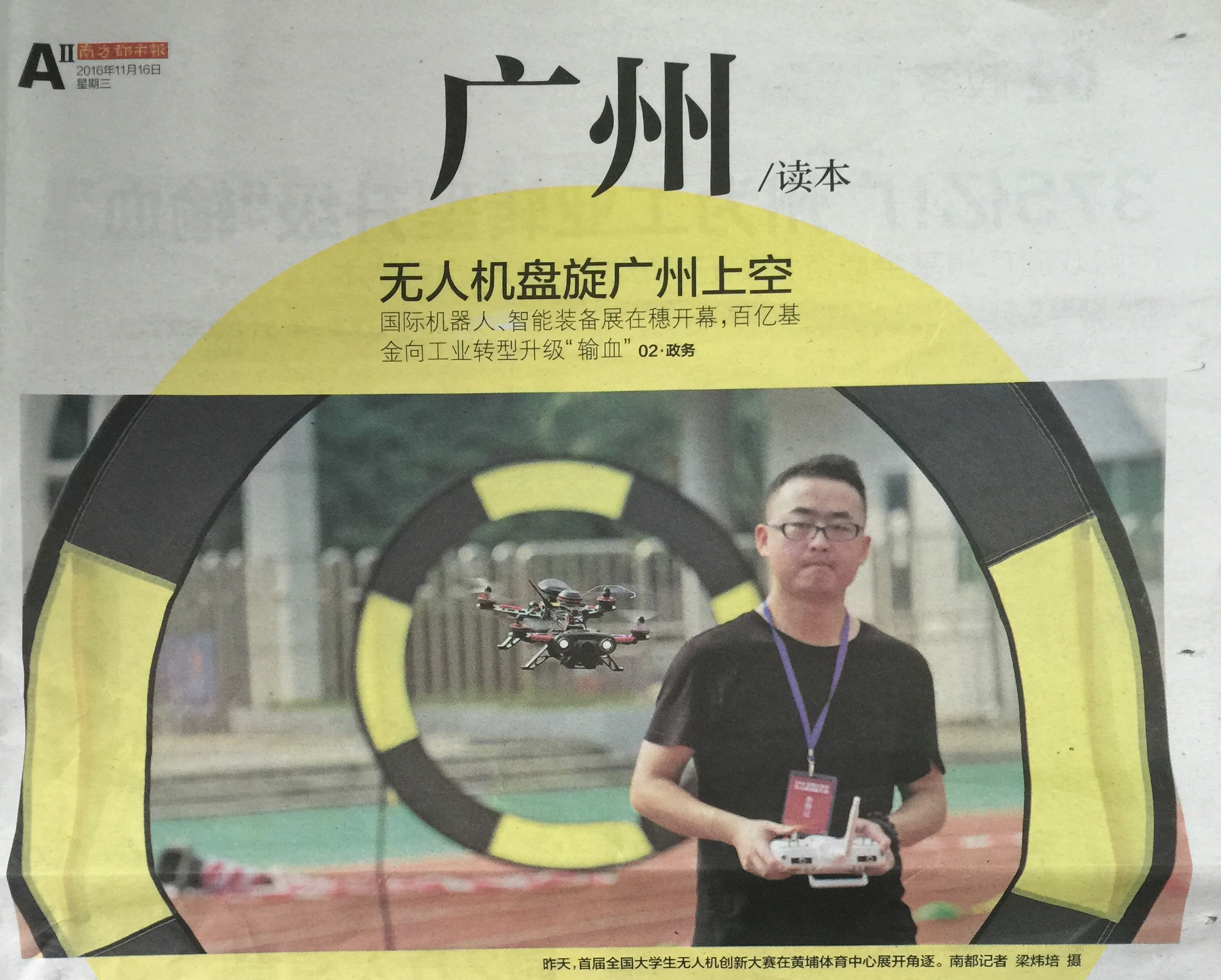 我院机械电子工程系朱航老师指导的本科生无人机创新代表队,参加了于2016年11月15日在广州市举办的2016首届全国大学生无人机创新大赛。