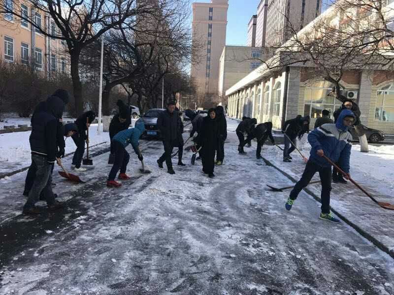 雪后初霁,各党支部在接到通知后,迅速组织同学拿上扫雪工具到达了指定地点。正是天气寒冷的时候,扫雪现场却气氛火热,同学们兴致高昂,丝毫没有被冷风所阻碍。由于昨夜雪大且雪层较厚,给清雪工作造成了一定的困难。但同学们积极性高涨,真正把扫雪工作当成自己责任和义务,尽管天气十分寒冷,同学们都不曾松懈。遇到难以处理的坑洼路面时,同学们集中在一起,劲往一处使,共同扫除了这些障碍。扫雪期间,大家遇到的问题很多,却没有人轻言放弃。最后,就是在这样坚强的精神鼓舞下,本次扫雪活动得以圆满成功。