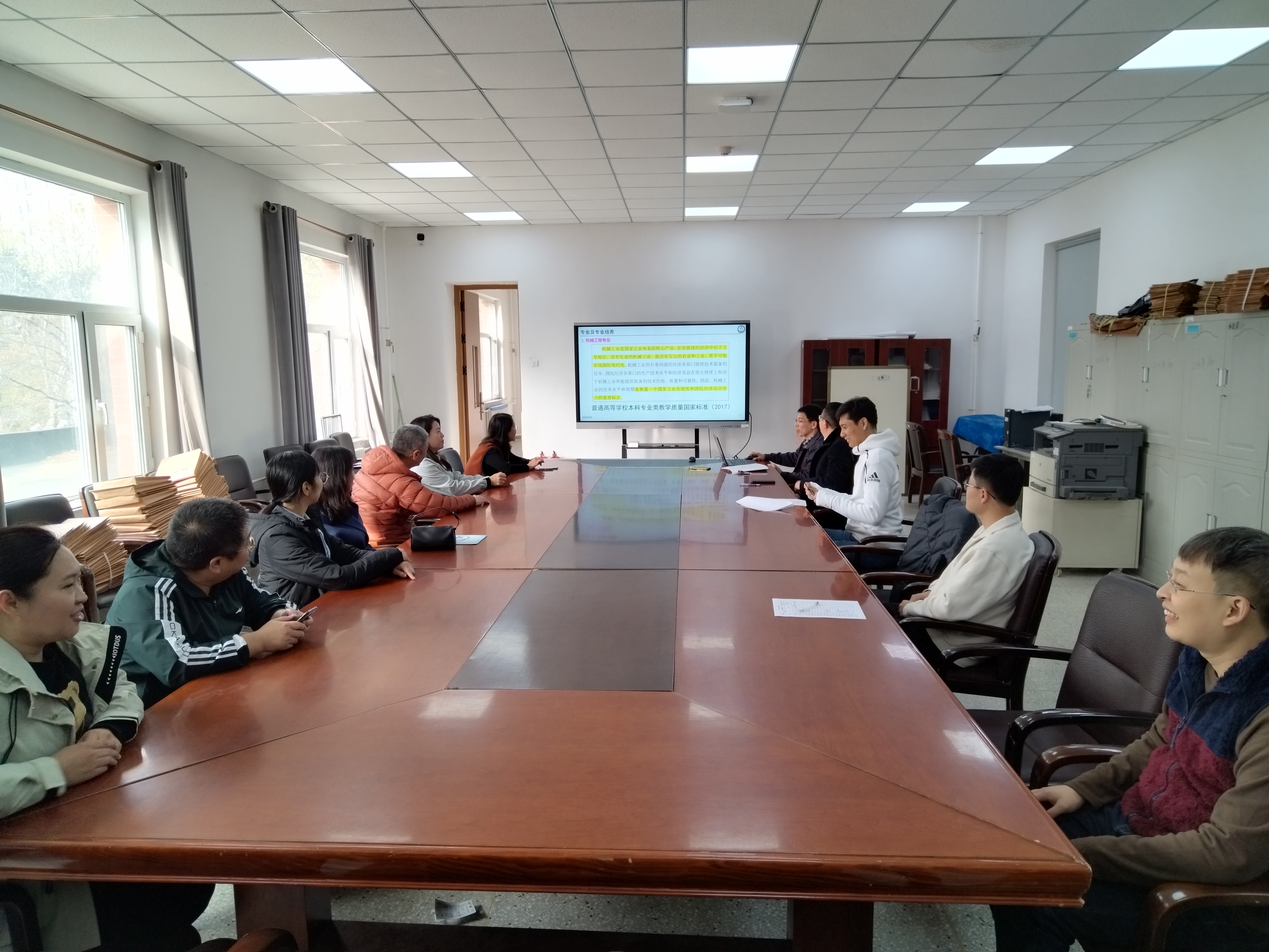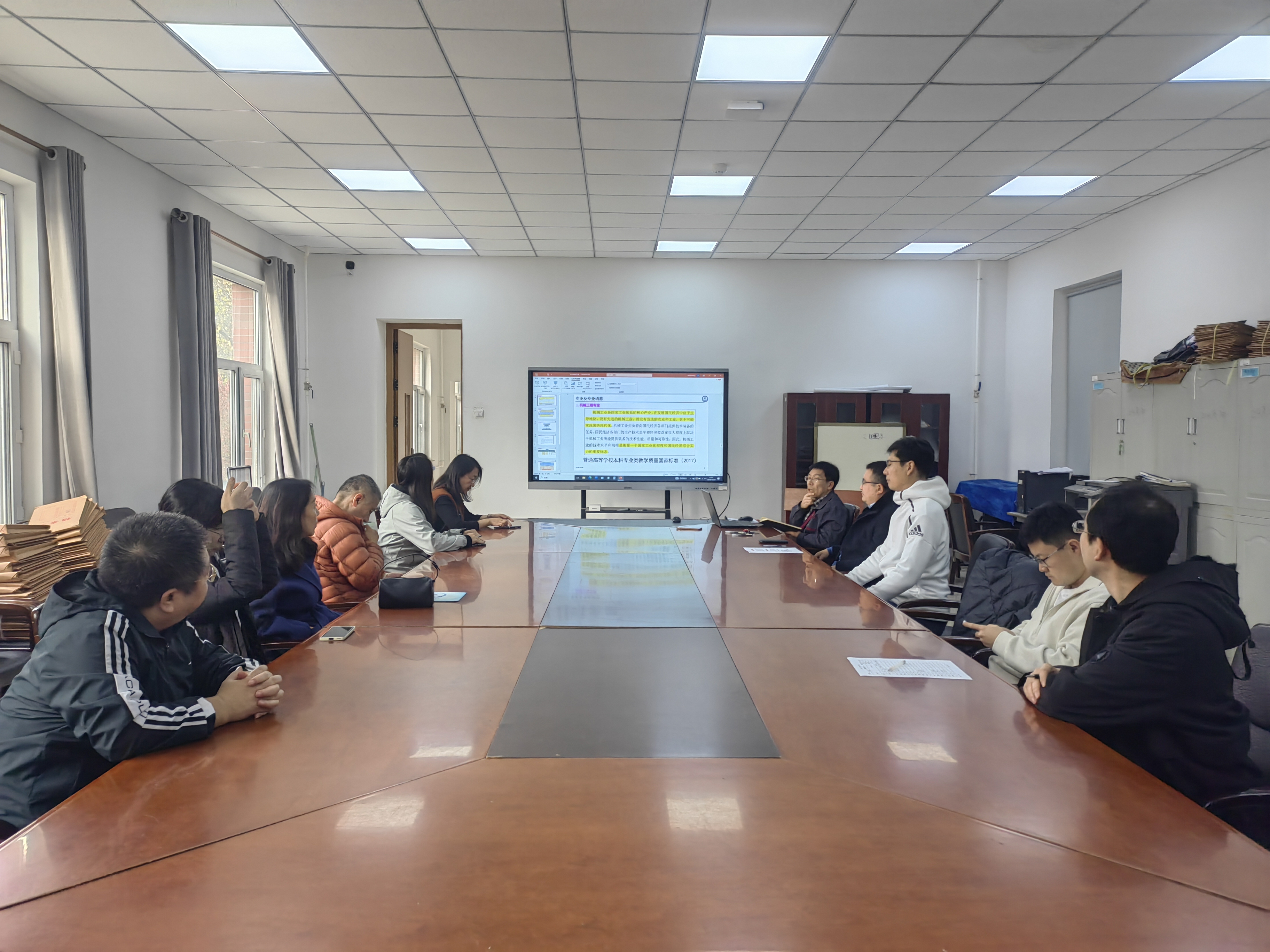 会中,王顺对机械工程专业本科教学质量国家标准、课程体系构建、课程培养目标、毕业要求达成等方面进行详细讲解,深入分析课程学习中学生知识迁移、知识融合、能力提升的重要性。在课程学习中,教师应引导学生明确课程在专业培养体系中的定位及对培养目标的支撑作用,激发学生学习的主观能动性,充分发挥学生自主探索学习的潜力。教研室党支部书记柴博森教授强调要充分发挥基层党组织对本科教育教学高质量发展工作的引领作用,落实立德树人的根本任务,在课程教学环节要注重引导学生践行社会主义核心价值观,提升教师综合素质和教学能力,合理设计课堂教学活动务必围绕学生感兴趣、所需要的知识、技能展开,落实科研成果反哺本科教学,提升课程学习的高阶性,提高课堂教学质量,争做学生喜爱的好老师。