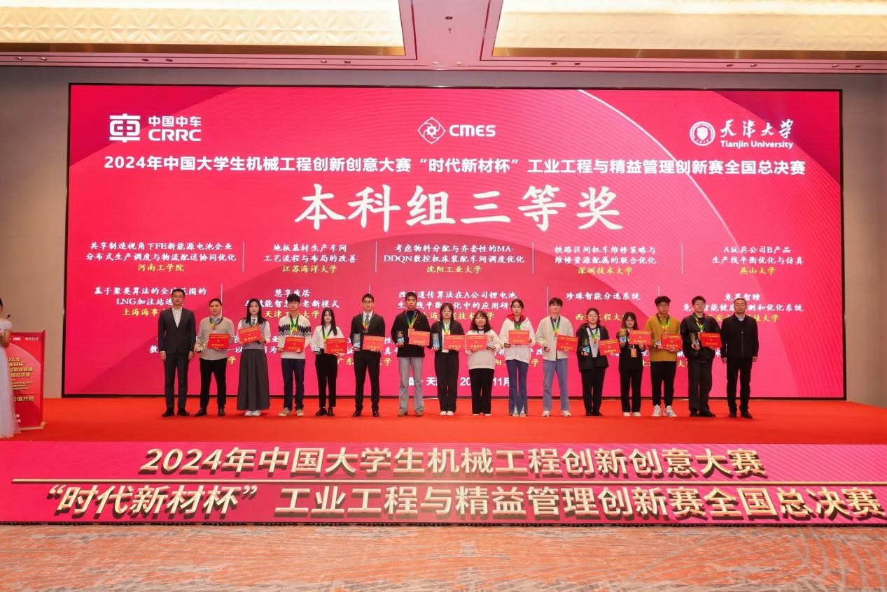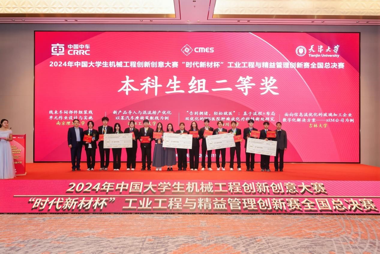 2024年11月2日-3日,由中国机械工程学会主办,天津大学管理与经济学部、中国机械工程学会工业工程分会承办的2024年中国大学生机械工程创新创意大赛——工业工程与精益管理创新赛全国总决赛,于天津圆满落下帷幕。本届大赛主题为“数智融合,价值共创”。在本次大赛中,我院工业工程系表现卓越,共有三支本科生队伍成功闯入大赛全国总决赛,并分获全国一等奖、二等奖和三等奖。