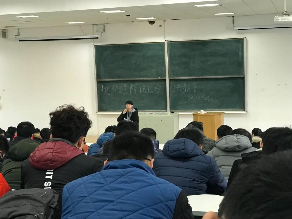 按照《关于2018年硕士研究生招生考试诚信应考的通知》要求,为严肃考风考纪,营造风清气正的考试风气。机械学院与12月14日在南岭校区逸夫楼A411室召开诚信考试教育大会,机械学院2014级全体本科生参加会议。会议由学生工作办公室主任、2014级辅导员李佳亮主持。