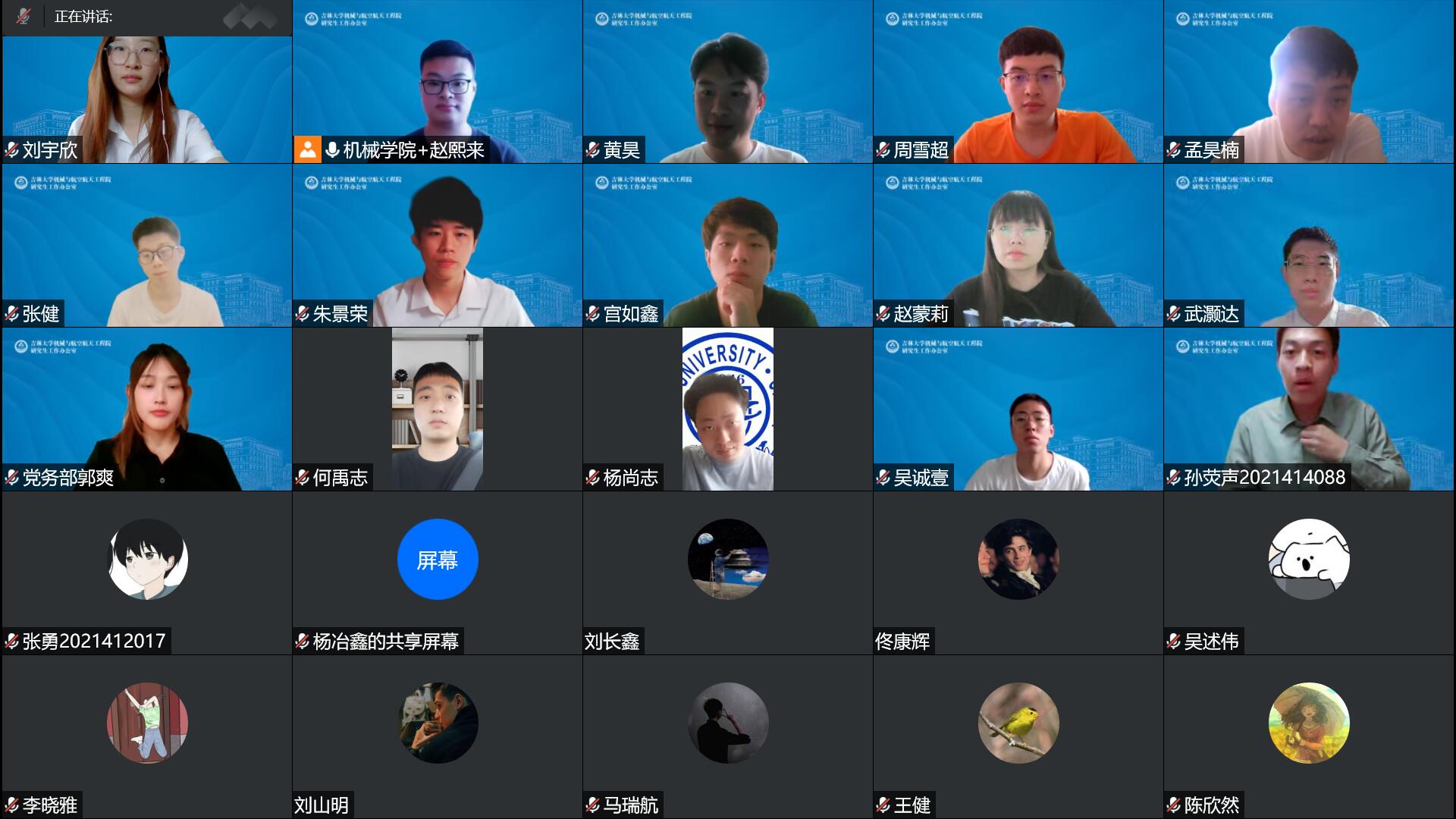 为促进学院研究生团委、研究生会各部门健康发展,保证学院研究生工作有序进行,2022年6月21日上午,新葡的京集团8814研究生团委、研究生会换届竞聘工作在线上举行,参加会议并担任评委的老师有学院党委副书记黄莹,研究生培养办公室赵南、刘继娟,研究生辅导员张瑛、曲艺。