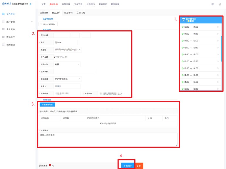 4.依据自主上机时间合理选择电镜的预约时间。