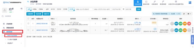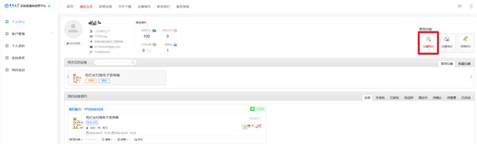 1.使用指导老师账号登陆实验室综合管理平台,并进入仪器共享管理界面。