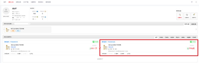 7.仪器管理员登陆系统,在系统首页可看到相应的预约情况,经过管理员审批同意后,则顺利完成仪器(例如扫描电镜)预约。