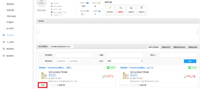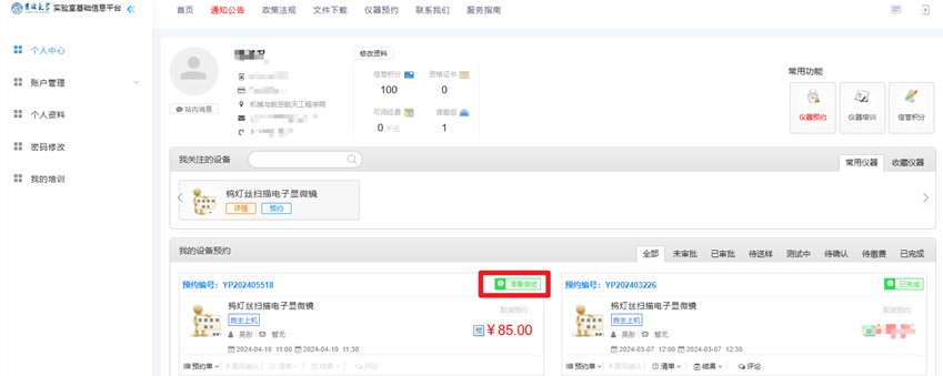 8.管理员通过后,可登陆预约人的账号,查看预约进展。当显示为准备测试时,可按照预约时间进行测试。