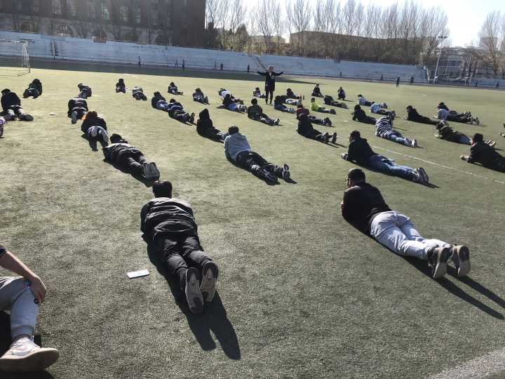 同学们每日早晨625分的足球场与晚上920分的在十二公寓门前进行训练,文艺部部员带领大家签到并按照队形有序站好,便开始了每天两小时的训练。首先,文艺部部员们在队伍前演示动作并讲述动作要领,同学们积极配合认真观察。接着,同学们跟随着音乐节拍练习健美操动作,文艺部部员们下到队伍中指出并纠正同学们动作上的错误,对没有理解动作细节的同学加以耐心指导,帮助其掌握动作要领。同学们积极配合文艺部部员的工作,每个人都努力把动作做标准,他们相互理解各尽其职,共同为健美操比赛做准备。主席团也会不定期视察同学们的训练情况,安慰同学们可能存在的抱怨情绪,同时激发同学们坚持训练的热情。