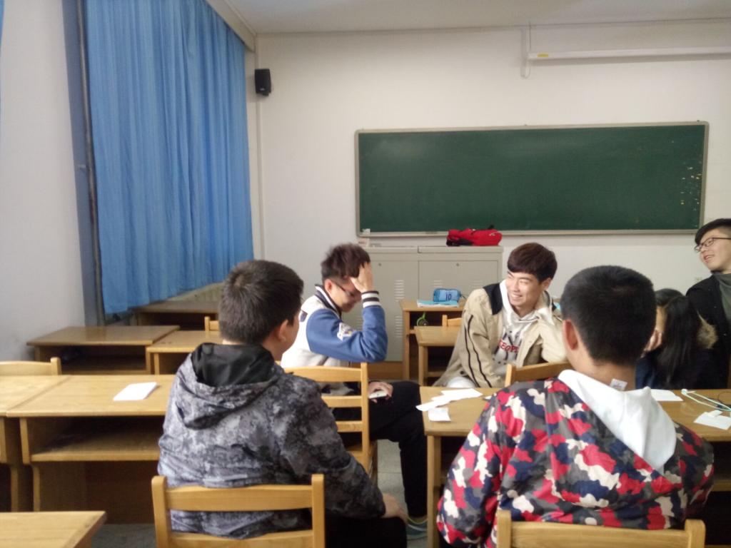班会在班长和生活委员的指导下有序进行。首先,生活委员将班级同学分为两组,每组同学选出一名组长作为引导人员,充当同学们沟通的桥梁。活动形式主要为同学们之间的交谈,另外以小游戏的形式加以补充。首先,同学们进行了交流,敞开心扉,由最初的稍有内敛到后来的积极活跃,各个同学都很好的融入了集体中,并且将以前的矛盾来源都解释开来。同时引导人员也尽心尽力,以身作则,以自己为例教会同学们如何没有隔阂的走进活动,如何将自己融入到活动中去。深入的交流之后便是游戏环节,气氛欢快融洽,大家俨然成为了一家人。就这样,在一片欢声笑语中,心理辅导班会圆满结束。