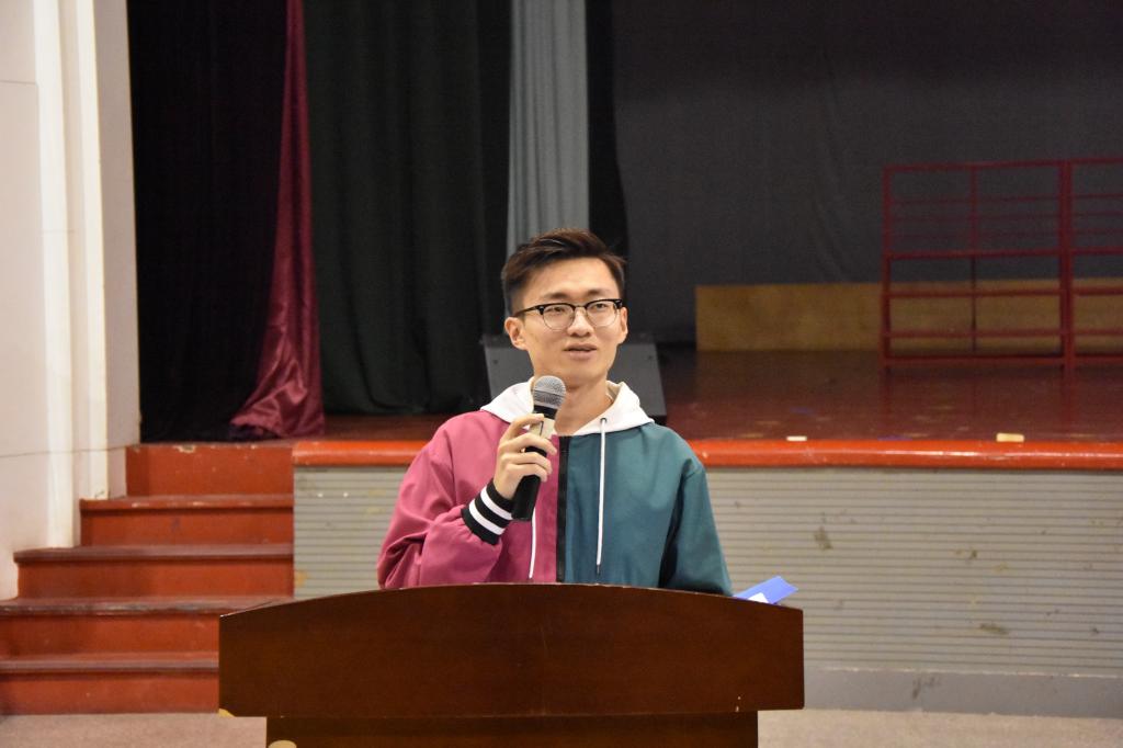 大会第一项,由2016级优秀学生代表王硕邦、王瑞发言,二位学长根据各自的经历就大学学习和学生工作两方面给出建议。他们希望同学们能合理规划自己的大学生活,以饱满积极的热情珍惜这来之不易的机会。从参与科研竞赛到发表论文专利,从社会实践活动到志愿文娱服务,时刻以学习成绩为第一要求,同时在团学或其它组织中做好学生工作,锻炼自己的综合能力。