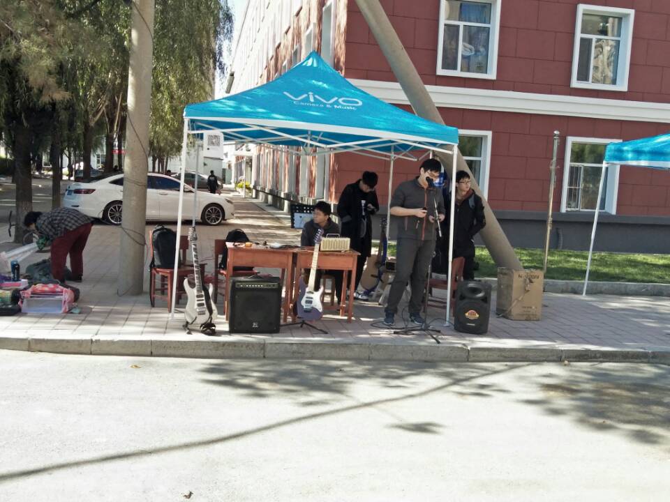 活动开始前,大家齐心协力布置现场,摆放桌椅、音响等设备,并支起帐篷。随后,许多社团的成员陆续到来,各自准备社团所需的物品。中午时许,随着来往人数越来越多,各社团开始八仙过海,各显神通,展示自己社团独有的风采。其中:粤语社、吉他协会等在现场唱起了动听的歌曲;轮滑社直接摆上道具,开始展示自己高超的轮滑技术;T.A舞团更是拿出了看家本领,现场跟随音乐跳舞。除此之外,其他社团虽然现场表演不多,却向大家展示了自己社团独到的风貌。各社团都各放光彩,吸引了许多同学前来观看。下午3点左右,活动接近尾声,各社团开始收拾场地,本次活动圆满结束。