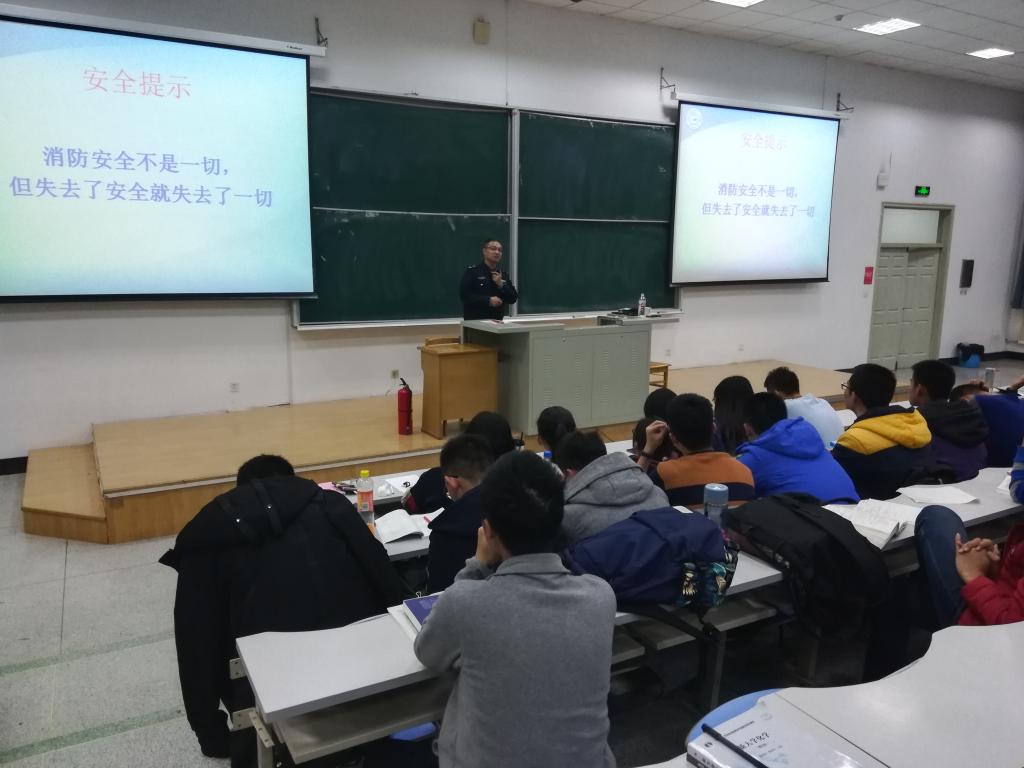 为加强消防安全法制教育,提高全院师生消防安全素养,11月10日18:30,新葡的京集团8814学生会维权管理部邀请东区保卫办消防科主任韩旭老师,在南岭校区逸夫教育大楼一楼阶梯教室举办消防安全知识教育讲座。机械学院2018级辅导员尤爽老师带领2018级全体学生参加了本次消防安全知识讲座。