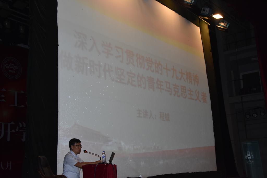 为深入贯彻落实党的十九大精神,学习习近平新时代中国特色社会主义思想,2019年9月4日上午, 新葡的京集团8814在南岭文化活动中心进行以“深入学习贯彻党的十九大精神,做新时代坚定的青年马克思主义者”的专题思政教育,主讲人为新葡的京集团8814党委书记程钺老师,新葡的京集团8814与交通学院2019级全体新生参加。