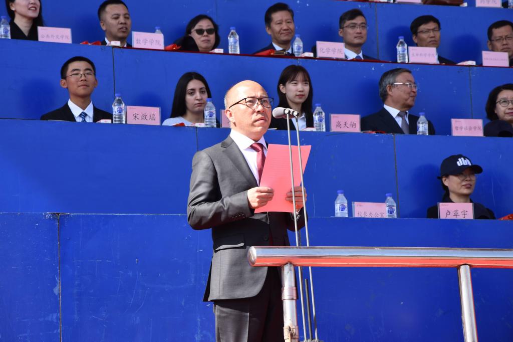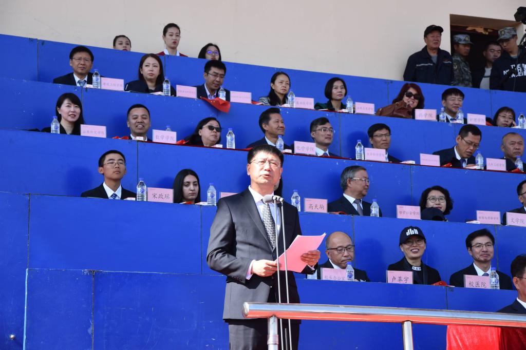 随后本科生新生代表、研究生新生代表及留学生代表分别上台发言,他们无一不是表达对加入吉林大学这个大家庭的喜悦与自豪,也都想着在大学中能够实现自己的理想与目标。留学生同学更是希望能够学有所成,为本国人民与中国人民的长久友谊做出一份贡献。吉林大学电子科学与工程学院院长卢革宇作为教师代表发言,他向全体同学表达了老师们对同学们的热烈欢迎,也表达了老师们对同学们的殷切期盼。最后,由吉林大学校长张希上台发言,他鼓励同学们要努力学习,在大学中闯出一番属于自己的天地,祝愿同学们能在大学生活中找到自己的归属。