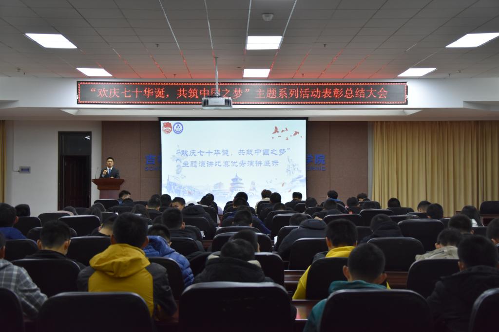 为庆祝中华人民共和国成立七十周年,培育广大学生的爱国情怀,充分发挥先锋模范带头示范作用,10月25日晚,在机械馆八楼会议室,新葡的京集团8814团委组织部举行了“欢庆七十华诞,共筑中国之梦”系列主题活动表彰大会。机械学院团委常务副书记张健、学生会主席衣航等主席团成员以及获奖人员、学生代表参加了本次大会,会议由团委组织部志愿者耿晨主持。