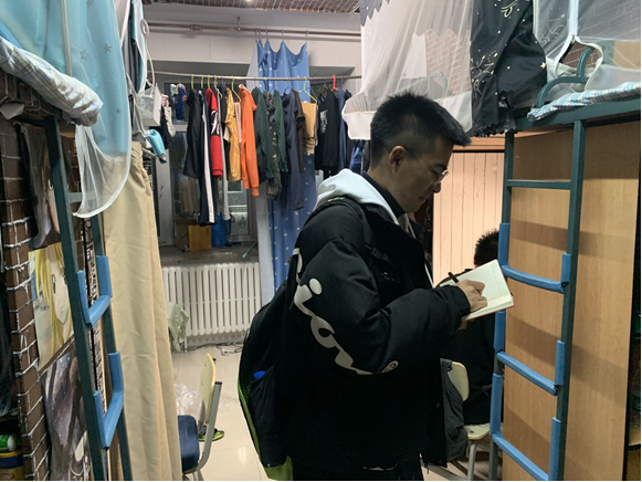 查寝工作正式开始之前,所有查寝人员在大厅集合,副部长们向查寝人员说明此次查寝的重要性以及注意事项。在随后的查寝工作中,查寝人员细致地询问同学们的住宿情况,检查暖气的供暖情况,并且对有损坏报修情况的宿舍进行详细的记录。此外,查寝人员还提醒同学们严禁使用违章电器,耐心地向同学们讲解使用违章电器可能造成的后果。副部长们对查寝人员出现的问题给予提醒纠正,以保证本次查寝活动能够顺利进行。查寝工作结束后,所有查寝人员在大厅集合,成员们汇总并且交流此次查寝所遇到的问题,讨论解决方案。至此,本次查寝工作圆满结束。