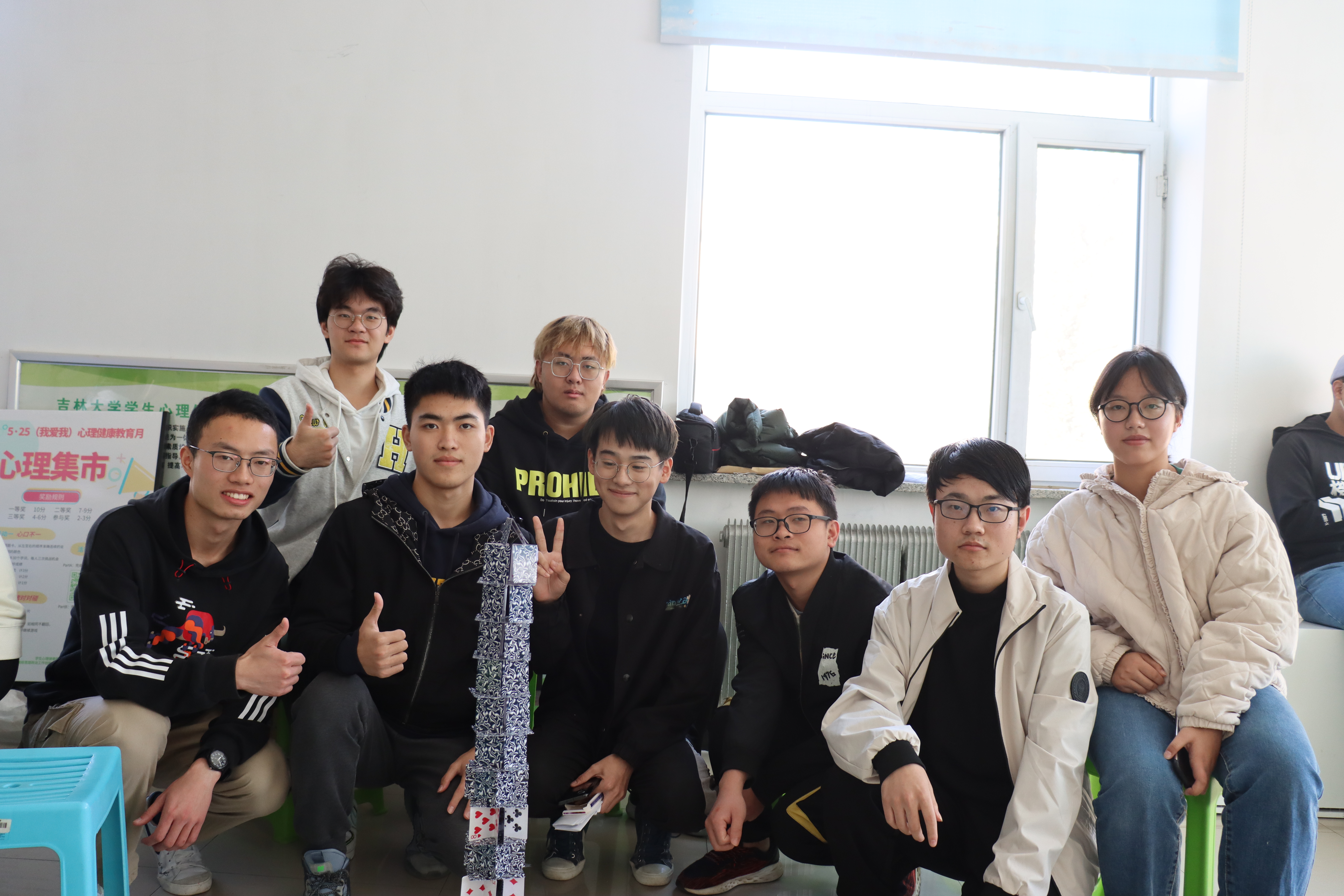 活动以"大风吹"、"乌鸦与巫婆"等热身游戏,拉开了序幕。在过程中,同学们从拘束到放松,从磕磕绊绊到配合默契,氛围逐渐变得轻松欢快。在简单分组过后,每位同学都介绍了自己所在的部门和名字,各个小组的成员逐渐熟悉起来。而后便开始了几个团体协作的游戏,在"七手八脚"游戏中,每组同学需要快速准确的伸出特定数目的手和脚,各组经过简单讨论后便选出了认为的最快最好的方案,默契一致的完成所给的指令。在最后的一个"搭纸牌塔"游戏里,需要同学们在规定时间内搭出最高的纸牌塔,有完成纸牌塔最快最高的小组与他人分享经验,也有失败几次后的小组吸取经验,不气馁的从零开始,向着更高更好前进。在活动中,同学们踊跃参与,相互协作,共同完成了每组的作品。