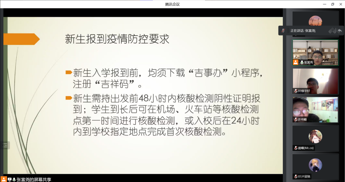 为了让22级新生提前了解学校概况,适应大学生活,融入新的集体,8月21日,新葡的京集团8814召开了2022级新生线上见面会,会议通过腾讯会议进行。22级新生辅导员张富尧老师、12名辅导员助理以及22级全体新生,共计324人参加了此次会议。会议由张富尧老师主持。