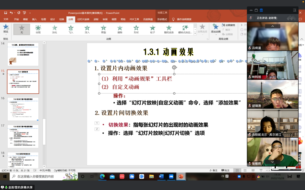 会上,尹万桀同学对勤工助学助理的日常工作基本要求、工作内容和重点注意事项做了全面阐释,强调了要明确自己的工作职责、保持认真向上的态度和严守工作要求。赵盼雪为同学们作了office软件基础技能培训,尤其在PowerPoint的基本操作中,通过现场举例演示讲解内容技巧,同学们收获良多。会议最后,由尹万桀同学进行总结。