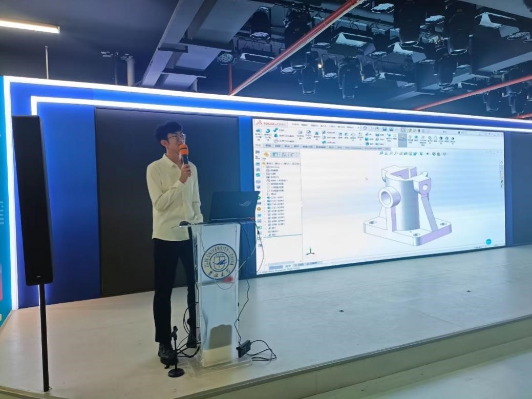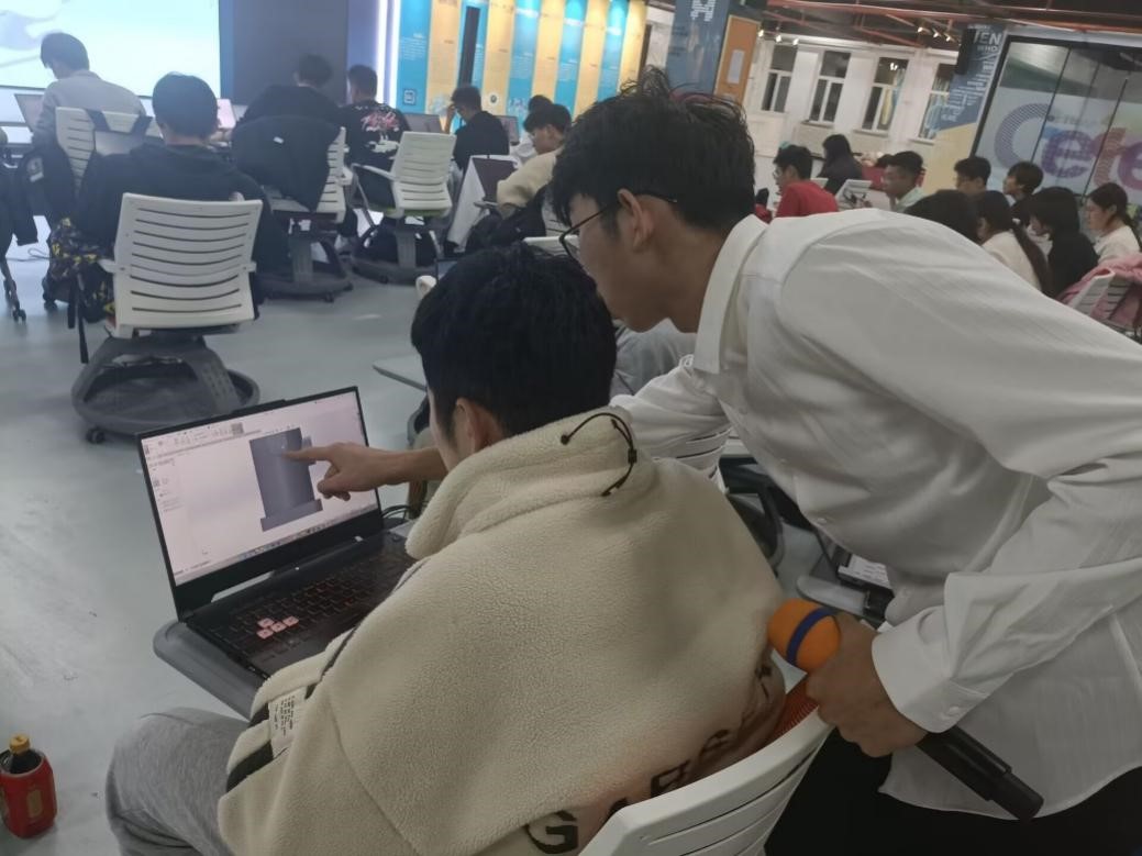 在学生掌握基本建模方法后,钟振宇同学和黄雅明同学向大家展示了快捷键在SolidWorks软件中的使用,强调了快捷键在提高制图速度方面的重要作用,为接下来的技术培训做好铺垫,也进一步点燃了学生的学习热情。