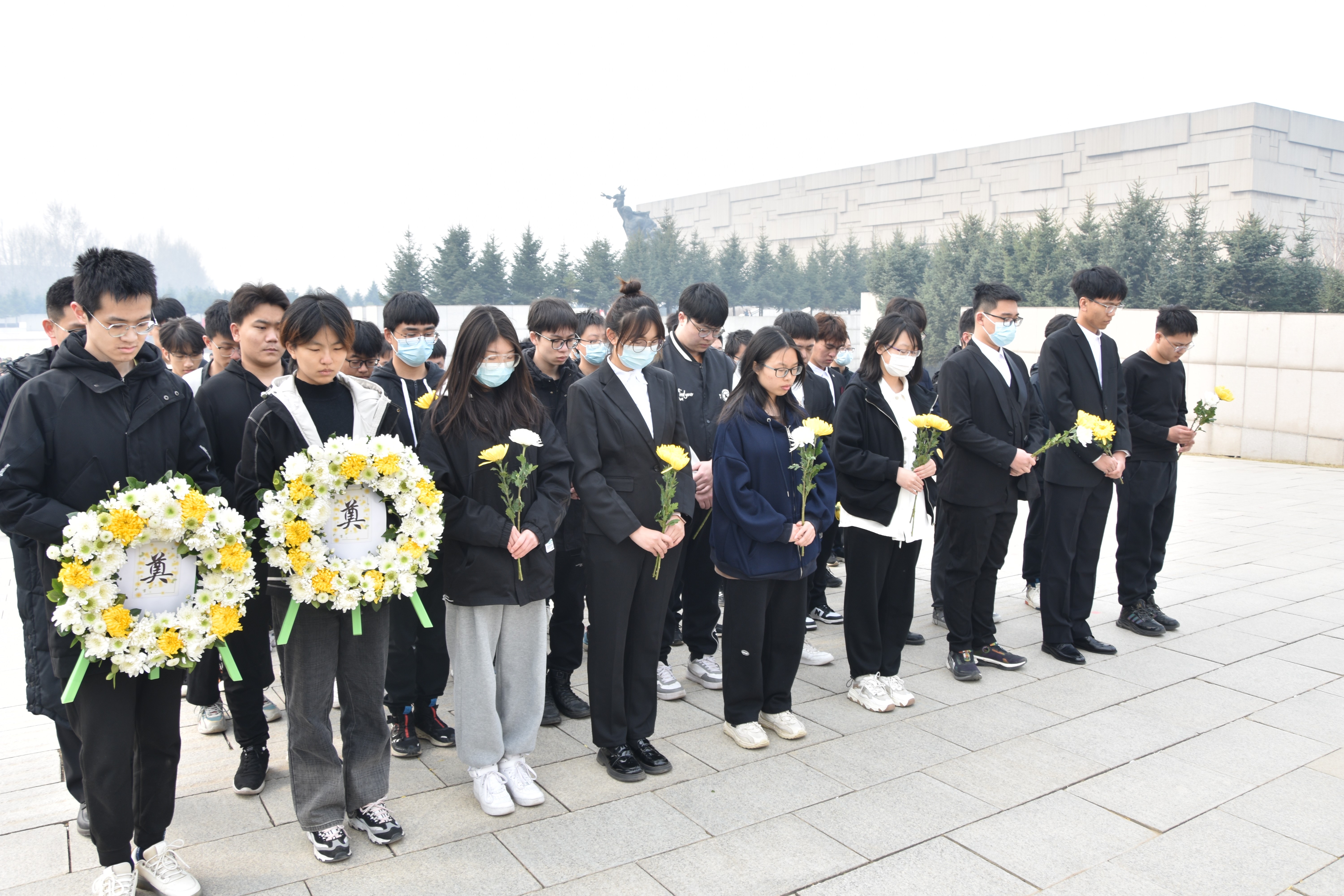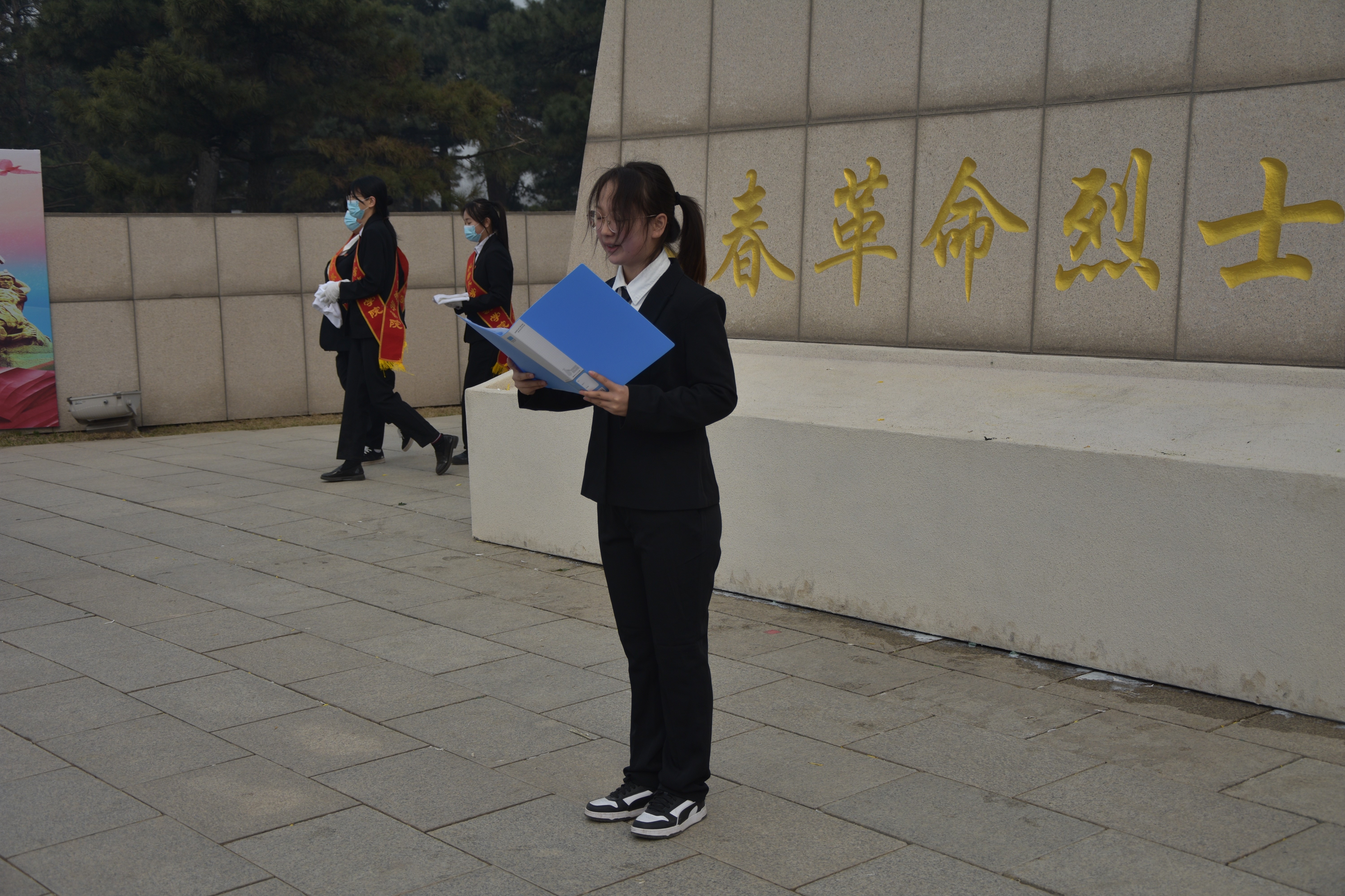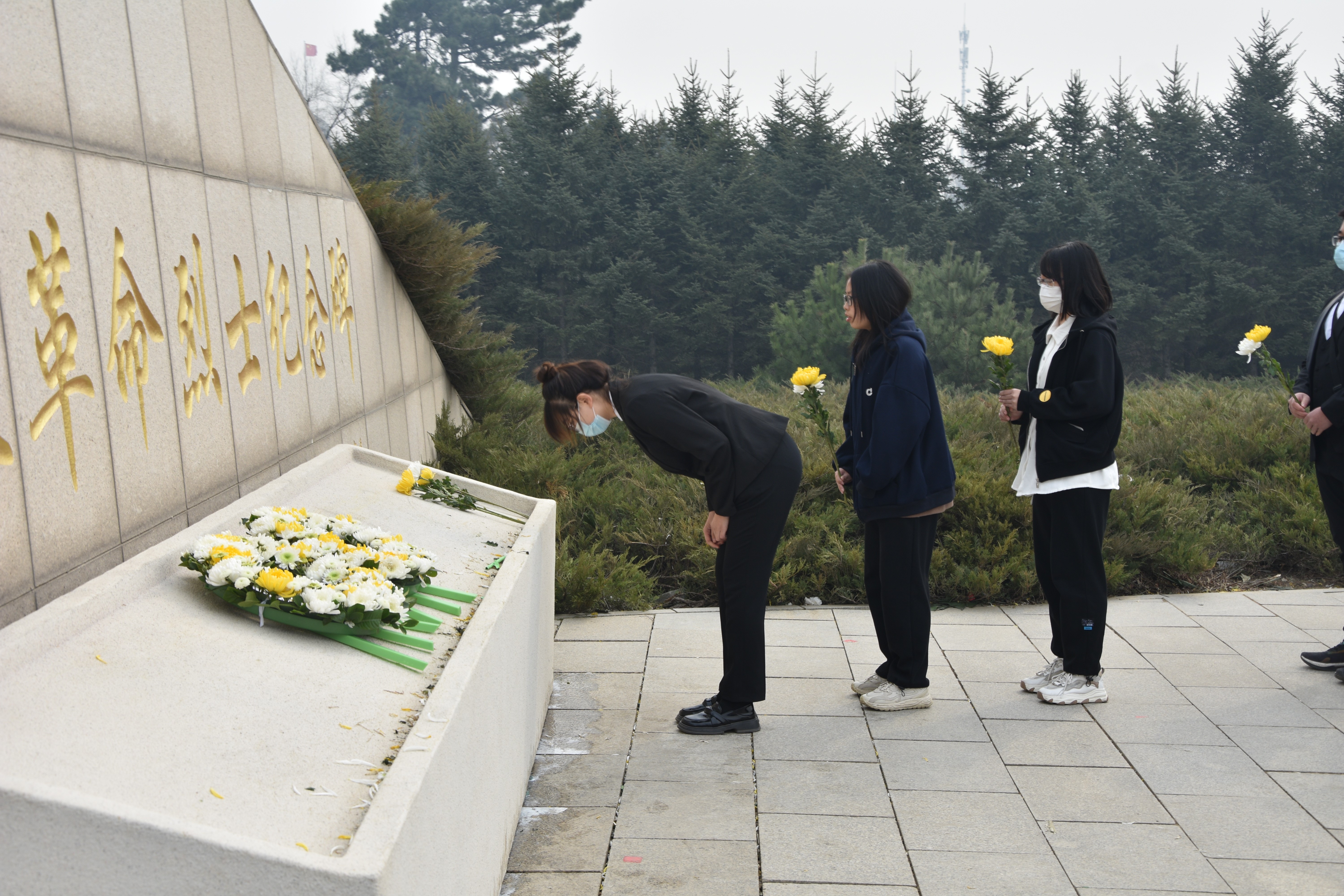 2023年4月5日上午9:00,大巴抵达长春市革命烈士陵园。2021级学生代表李赫同学在纪念碑下做祭扫演讲,瞻仰“长春革命烈士纪念碑”,全体默哀三分钟。