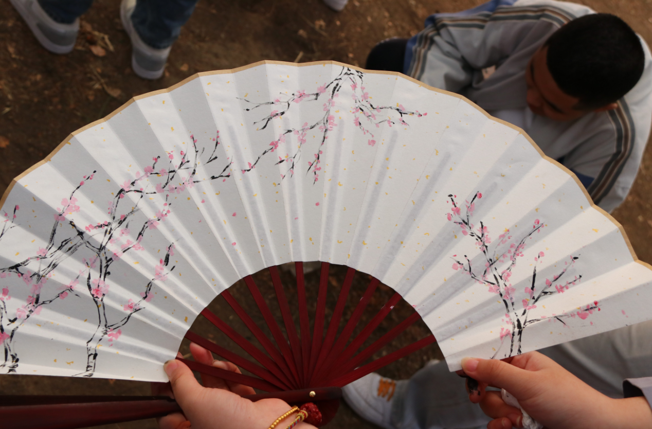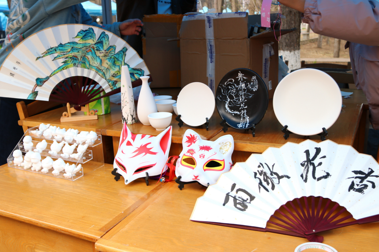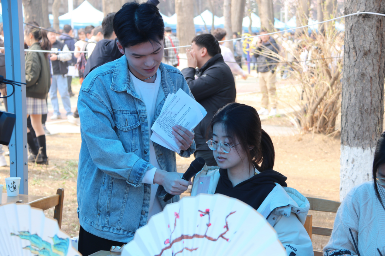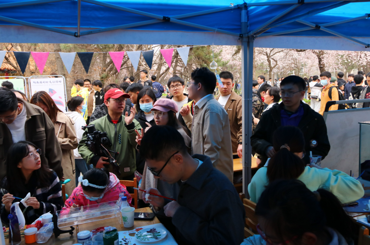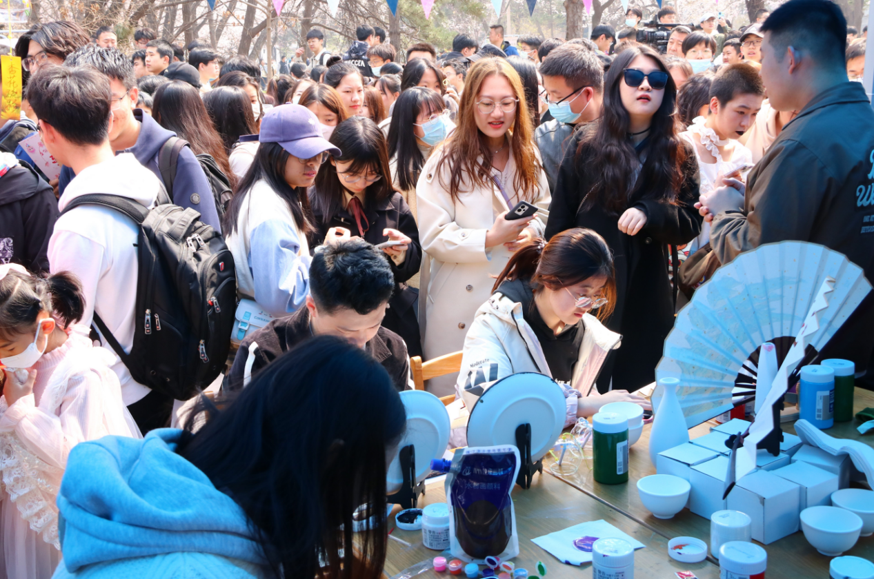 朝阳起,晨露散,笼罩在薄雾中的杏花渐显峥嵘,静候着观客们的到来。上午十点,本次杏花节的开幕式正式拉开帷幕,机械学院杏花文化体验区中陶扇面彩绘活动深受同学喜爱,同学们手持画笔,匠心创作,少许时,哆啦A梦、野比大雄等一个个活灵活现的动漫人物和一幅幅“杏花微语”、水秀山明的美景便呈现在精致的陶器和扇面上。期间,学校电视台采访,讲述着杏花,讲述着春,伴随周围观众的喝彩,构成一幅其乐融融的绝美春的画卷。