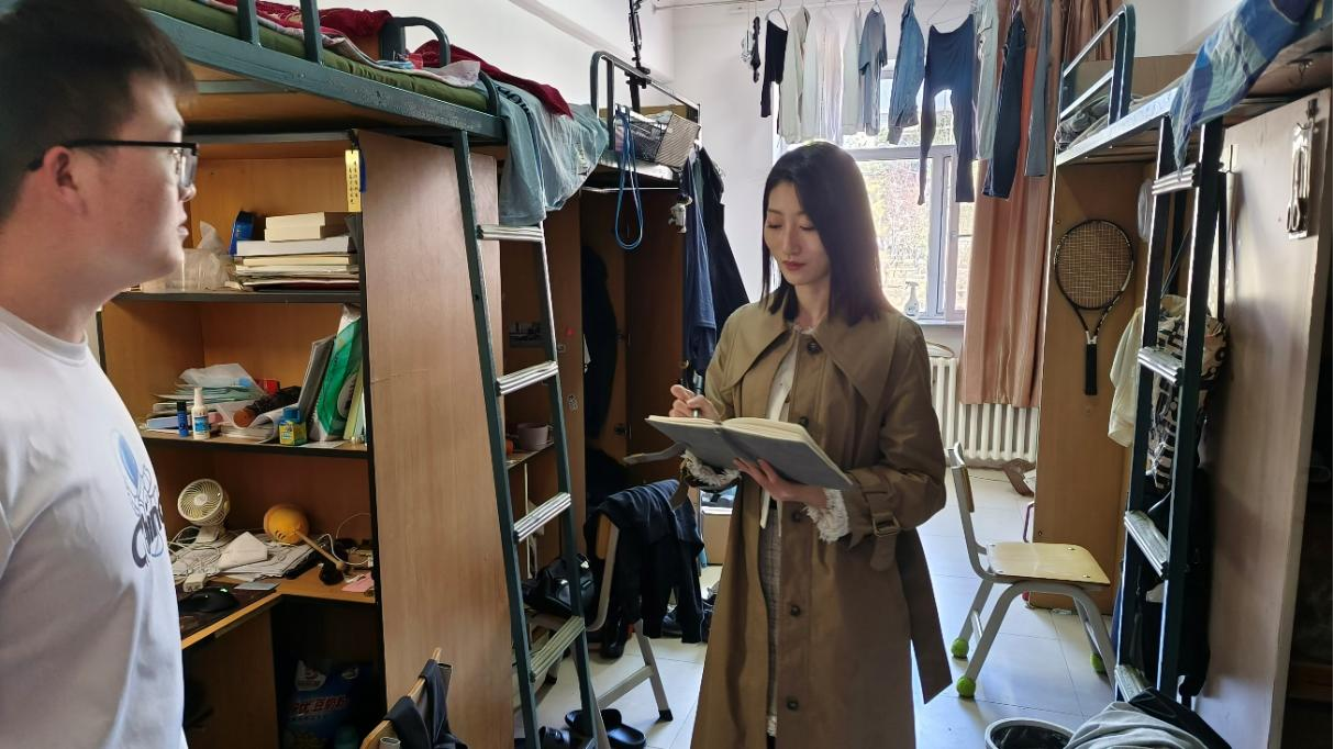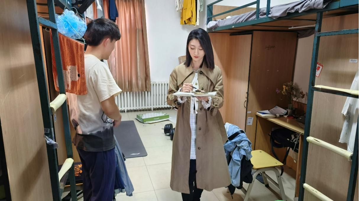 辅导员张瑛在检查中向同学们强调,五一假期是旅游高峰期,部分同学外出游玩,寝室处于无人居住的状态,要注意出门前对寝室进行全面断电,包括充电宝、插座等电器,拧紧消防“安全阀”,筑牢寝室“平安墙”。对于假期期间有人居住的寝室,严禁使用违禁电器,比如大功率电冰箱及发热电器等,一经发现,我院将采取严厉教育。在走访过程中,曲艺就同学们假期安排、近期生活状态与同学们进行了亲切的交流,并祝大家度过一个安全、愉快的五一假期。检查过程师生和睦,交流融洽,将发现的问题一一指出,各研究生们也表示会及时整改,营造一个和睦、文明的寝室氛围。