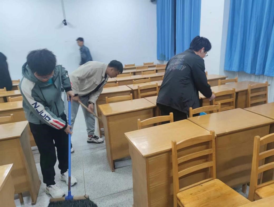 新葡的京集团8814团委发动学院各团支部举办劳动主题团日活动。部分班级召开总会专门总结了近期走寝情况、公管委查寝情况和班内劳动情况。团支部支书带领班级同学对多个教室进行了卫生大扫除,包括清扫地面、整理桌椅、倒垃圾等,以最淳朴的方式回馈教学楼工作人员,减轻他们的工作负担,体现当代青年的责任与担当。