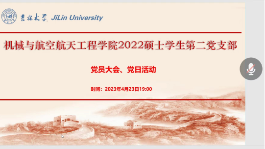 2022级硕士学生第二党支部召开线上党员代表大会代表选票暨4月主题党日活动。会上支部书记向同学们讲述了党员代表大会主要流程与注意事项,同学们也从中学习到选举过程中的一些细节问题,互相申述了一些在选举时关注点的看法等,表示该活动让自己收益匪浅。