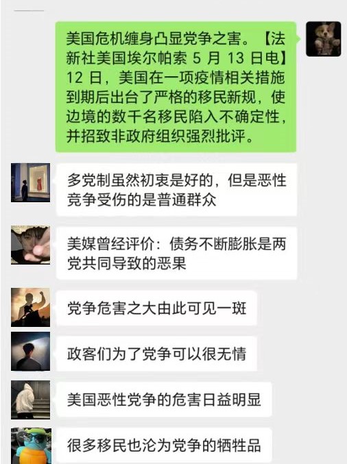 本次活动中,同学们就国内外形势和国际关系等议题发表了自己的看法和观点,探讨了问题的根源、解决方法等。通过线上交流的方式,对中国强调建设现代化产体系、日韩穿梭外交难解决两国分歧、欧盟对华政策协调寻求平衡感、美国危机缠身凸显党争之害等热点话题进行了热烈讨论。在讨论中,同学们既能够尊重不同的意见,也能够就问题进行深入地分析和辩论,展现出了独立思考、理性分析和严谨思辨的优秀品质。