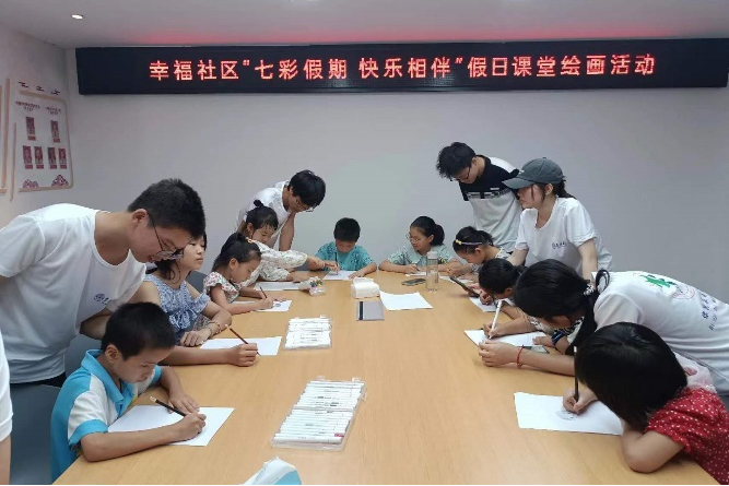 8月5日至6日,团队于幸福社区开展了一系列关爱留守儿童和空巢老人的活动。首先队员们教孩子们绘画,然后带领孩子们观看防溺水及安全用电的教育视频,此外还开展了“童心向党,红色引领”思政教育活动,介绍家乡的红色历史,让红色革命精神在孩子们心中生根发芽。此外,团队成员为老人测量血压同时团队医养专业的成员用所学的科学知识向老人们科普平时生活饮食习惯需注意的问题。团队成员还前往一位残疾老奶奶和一位患有高血压的老爷爷家中进行测量血压、把脉等活动。团队事迹被文明江西、中青网宣传报道。