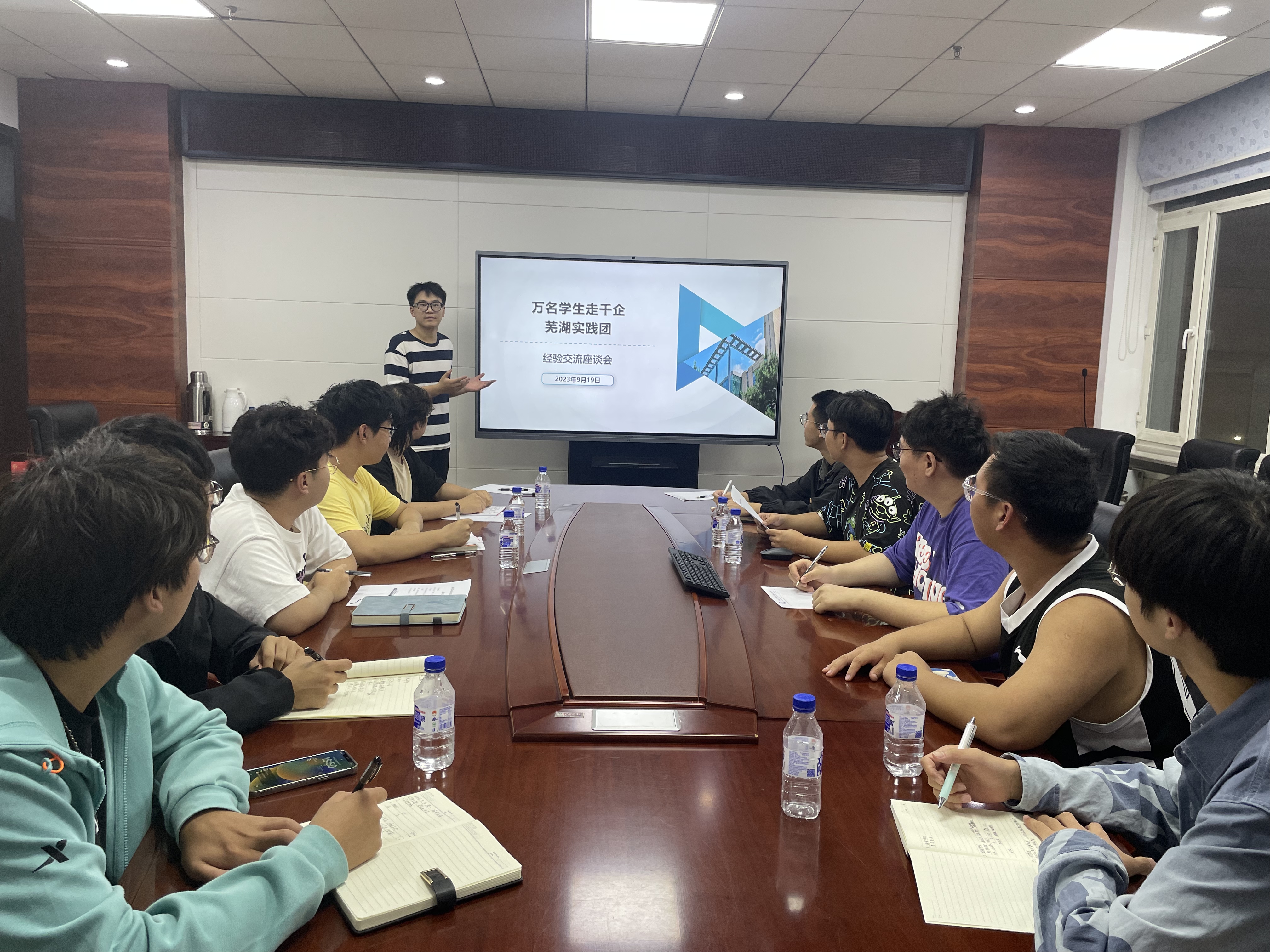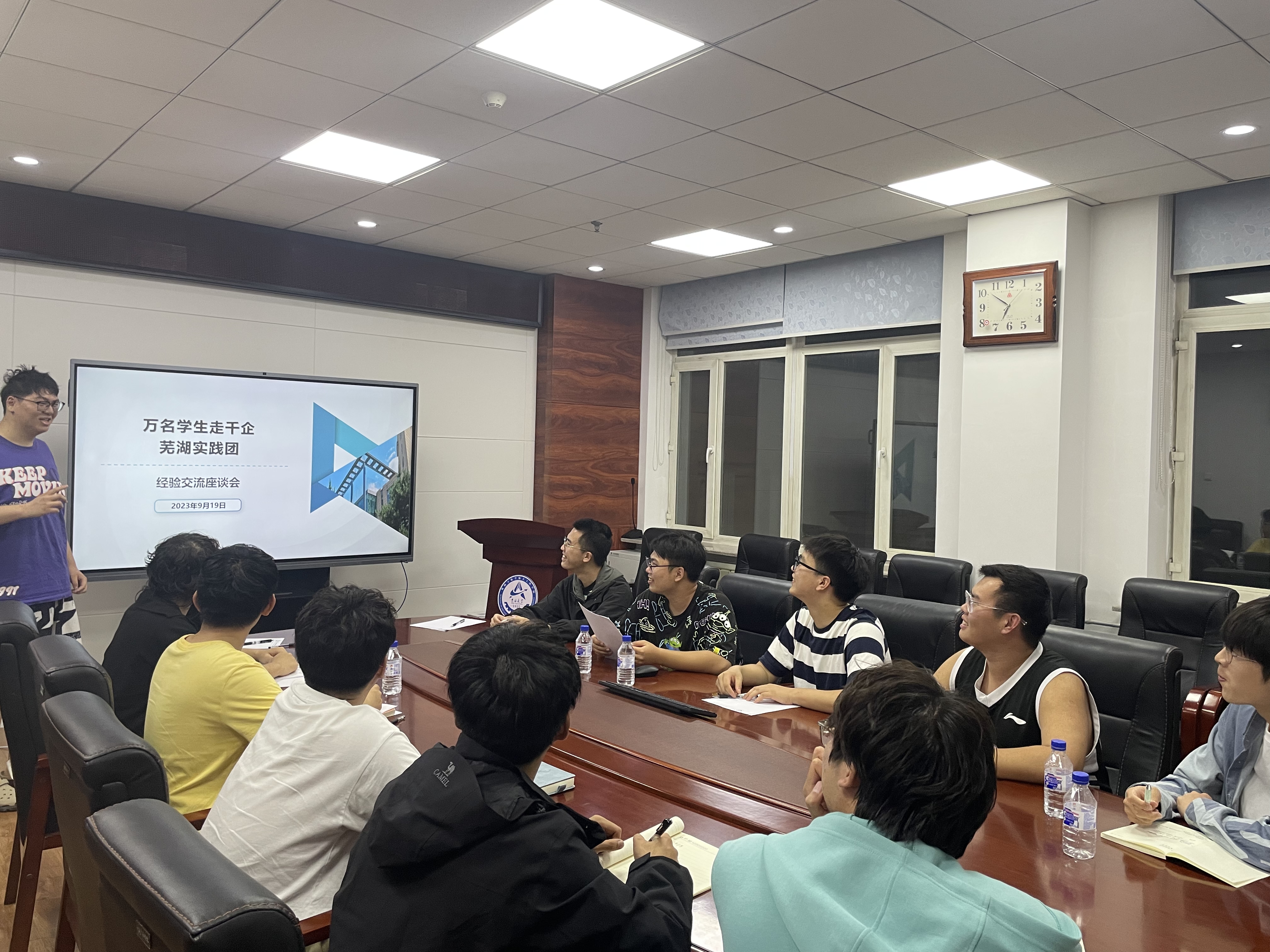 2023年9月19日,新葡的京集团8814团委组织召开“万名学生走千企”经验交流座谈会,邀请在今年暑假期间参加学校“万名学生走千企”社会实践活动的学生代表分享心得体会,学院部分学生参加活动。
